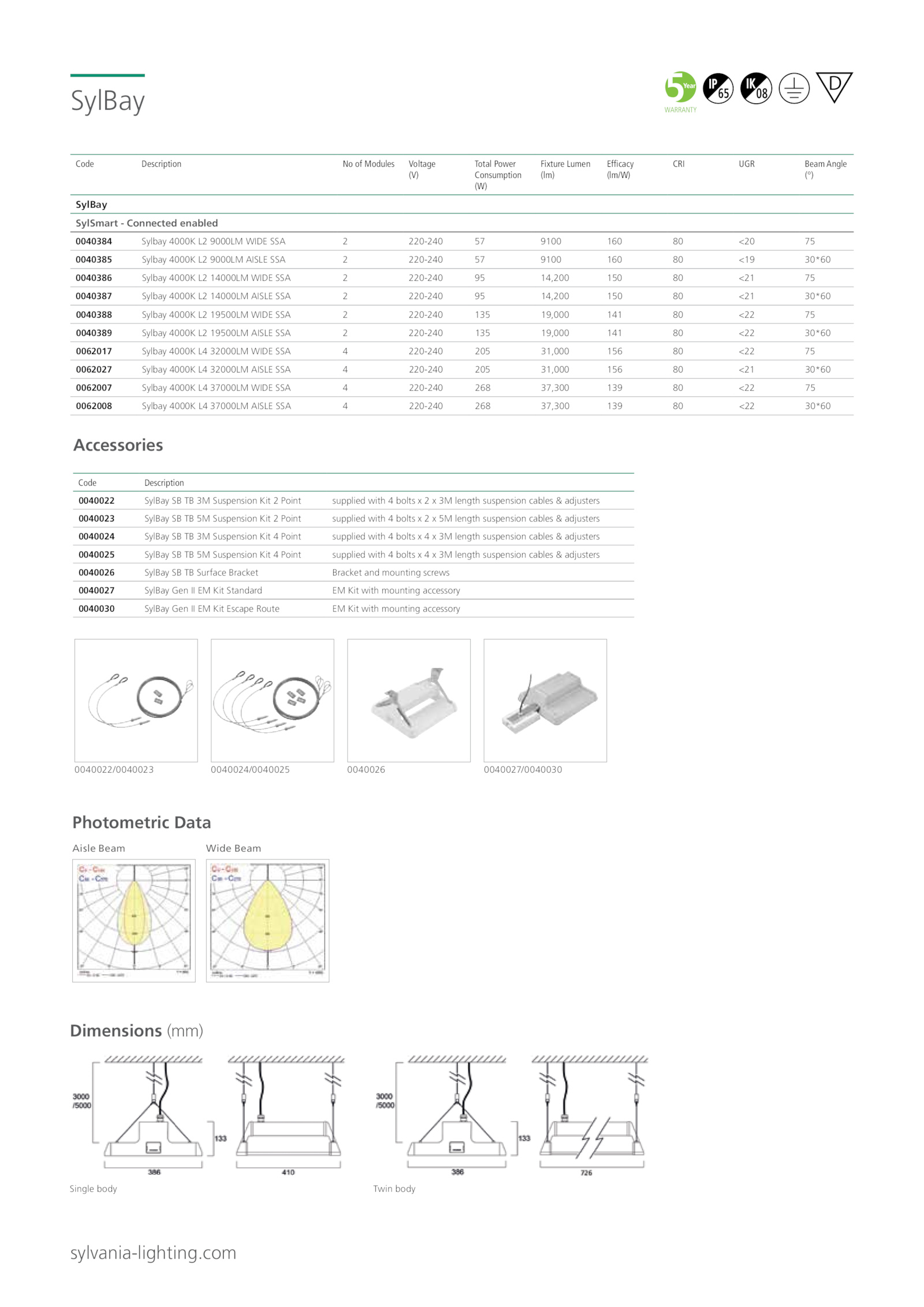 0040388 Sylbay 4000K 19500LM WIDE SSA 220-240 135 19,000 141 <22 75