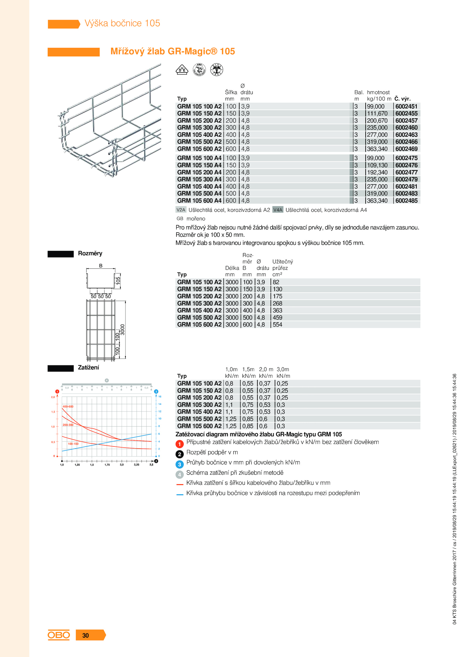 Zatěžovací diagram mřížového žlabu GR-Magic typu GRM 105