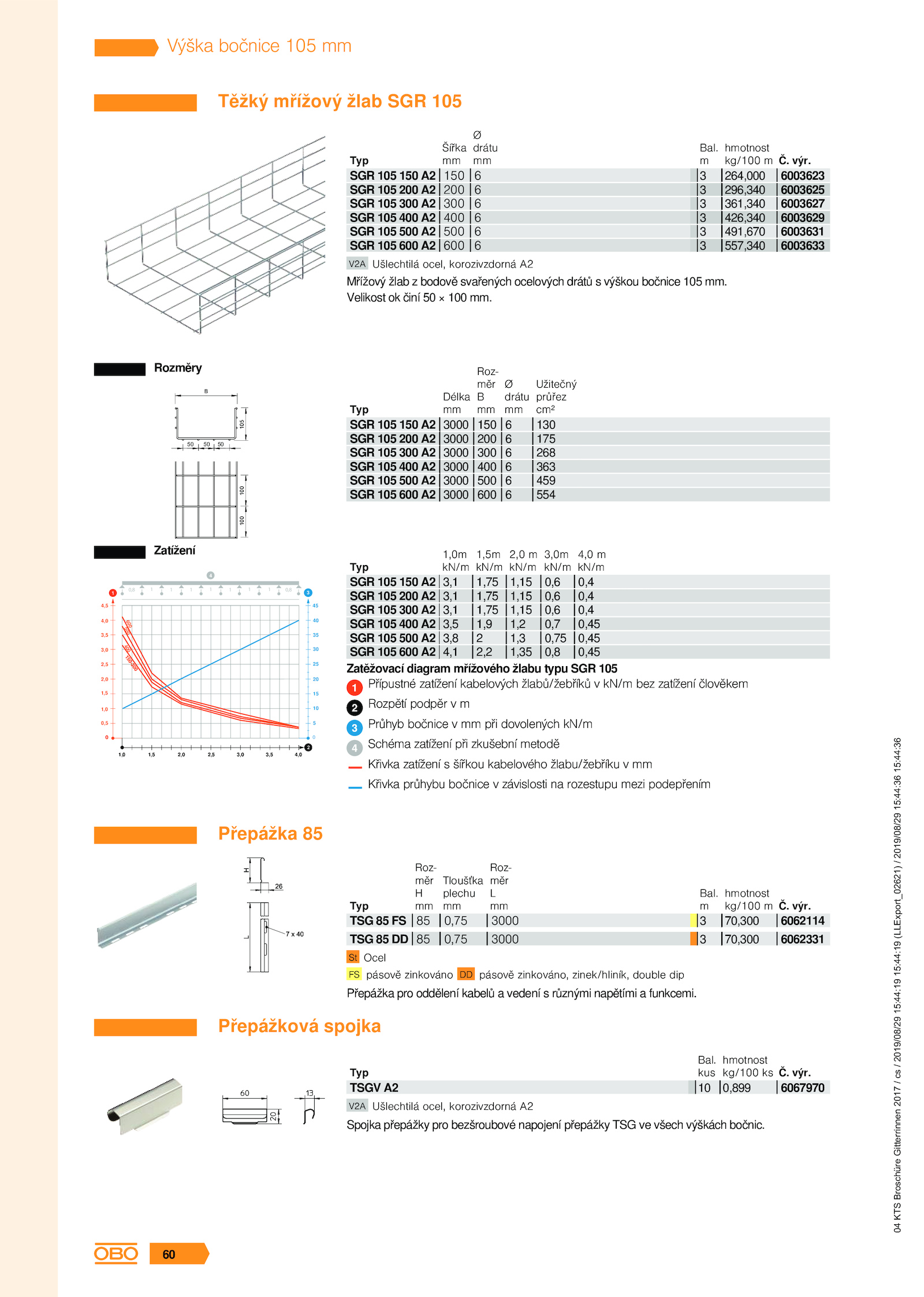 Zatěžovací diagram mřížového žlabu typu SGR 105