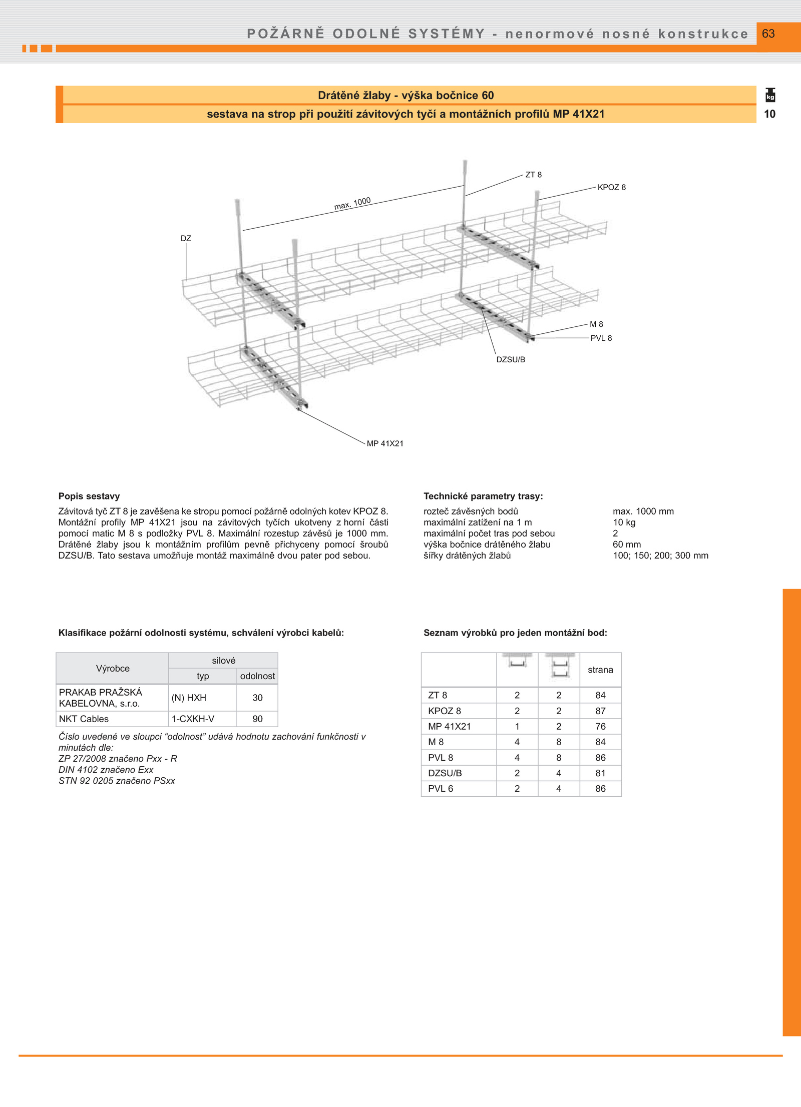 Klasifikace požární odolnosti systému, schválení výrobci kabelů: