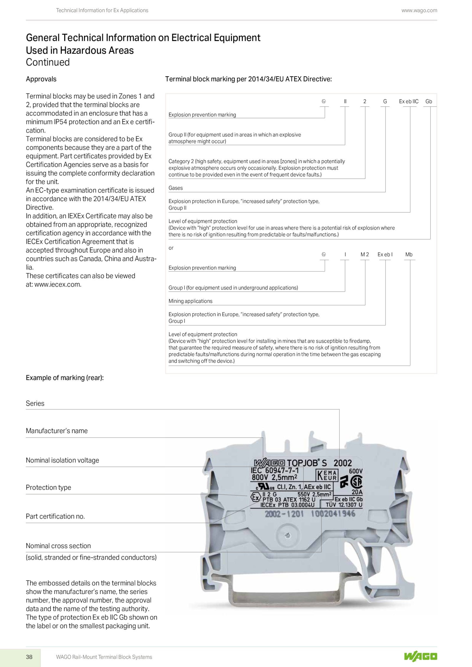 Terminal block marking per 2014/34/EU ATEX Directive: