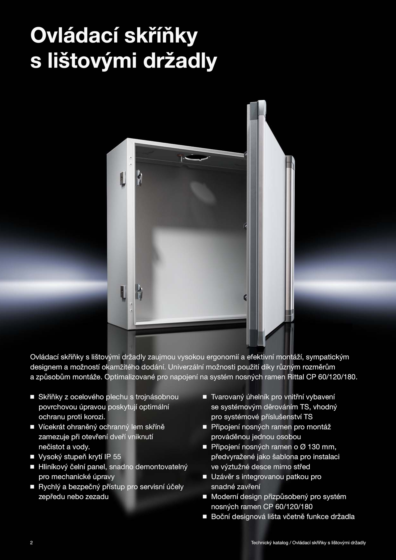 a způsobům montáže. Optimalizované pro napojení systém nosných ramen Rittal 60/120/180.Technický katalog Ovládací skříňky lištovými držadly