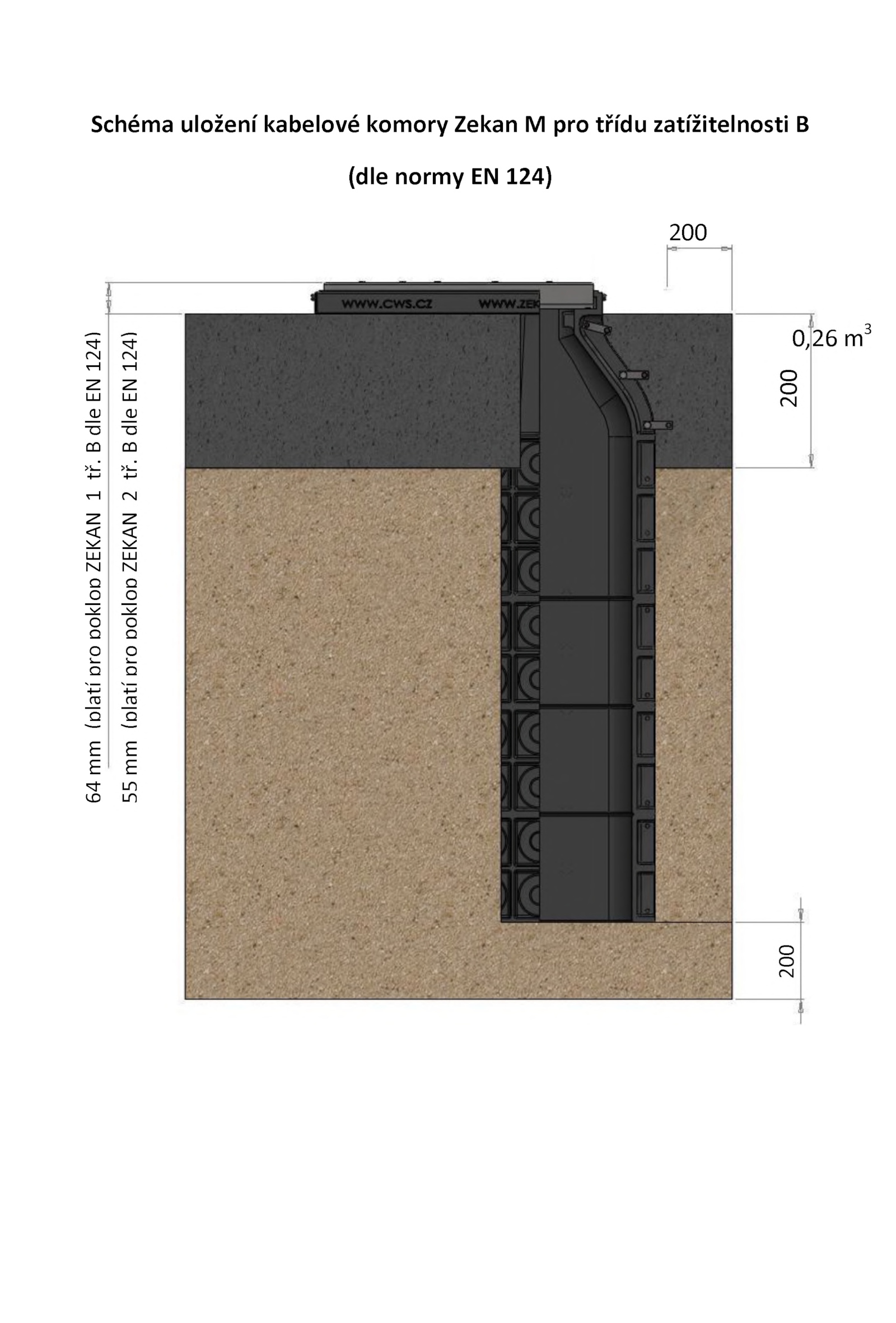 Schéma uložení kabelové komory Zekan pro třídu zatížitelnosti B (dle normy 124) 200 64 mm íolatí oro ookloo ZEKAN 1 tř. B dle EN 124)
