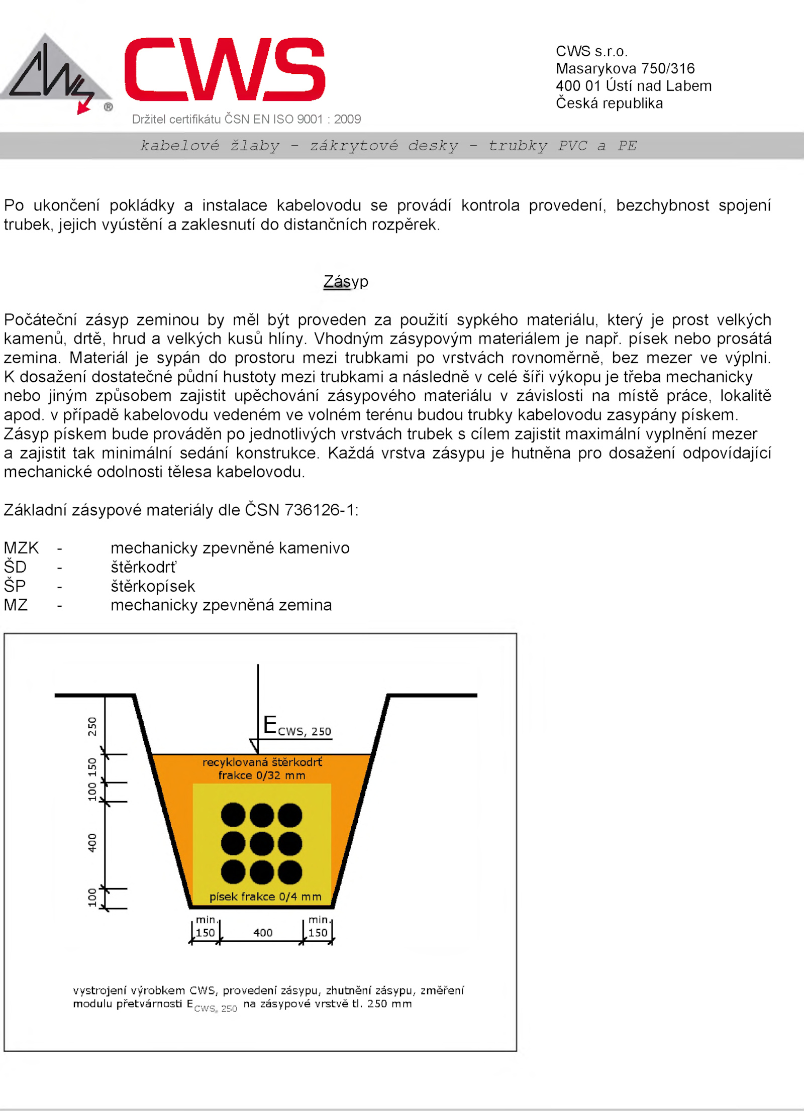 modulu přetvárnosti Ecws 250 zásypové vrstvě tl. případě kabelovodu vedeném volném terénu budou trubky kabelovodu zasypány pískem. Vhodným zásypovým materiálem např.