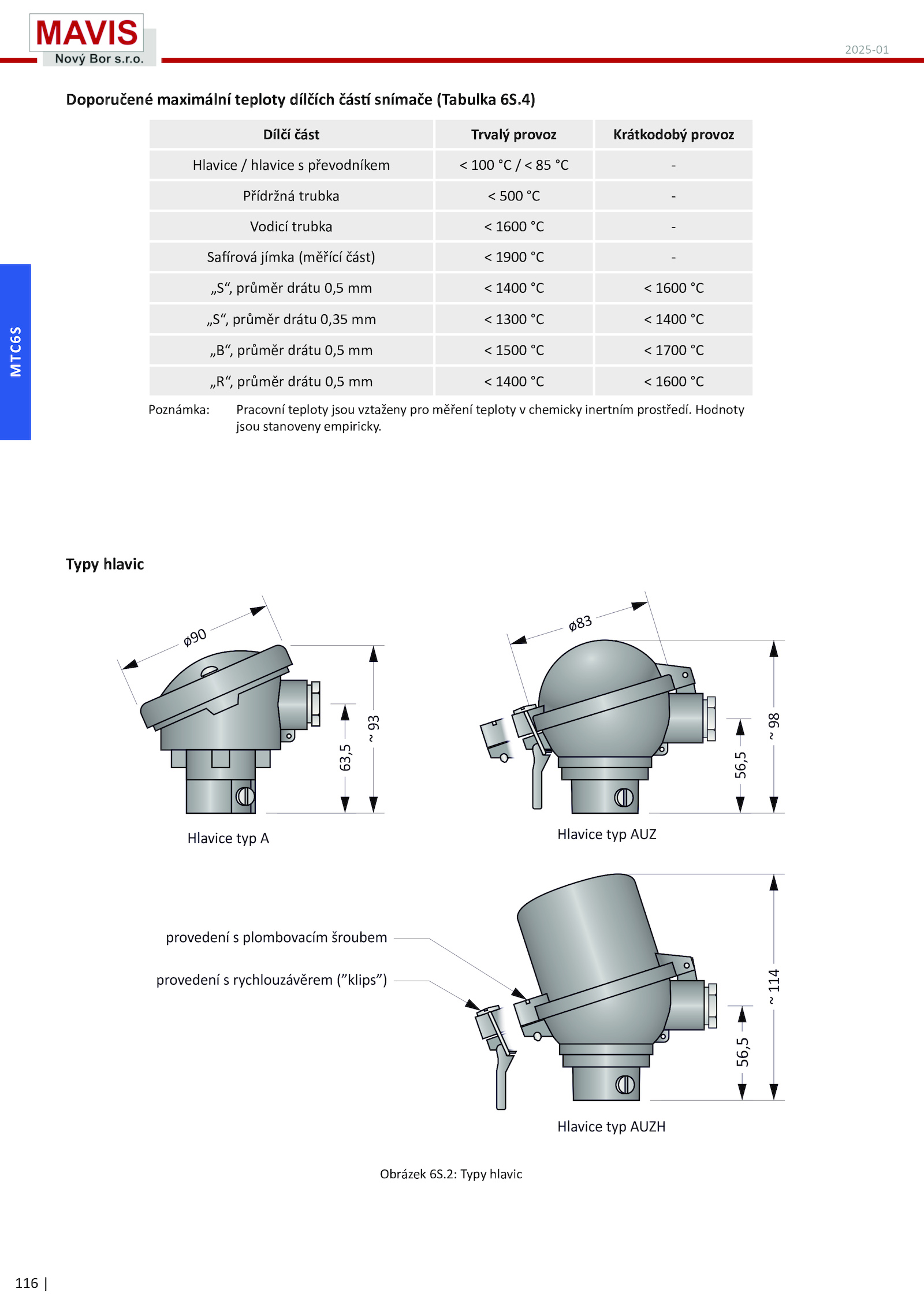 Doporučené maximální teploty dílčích čás� snímače (Tabulka 6S.4)
