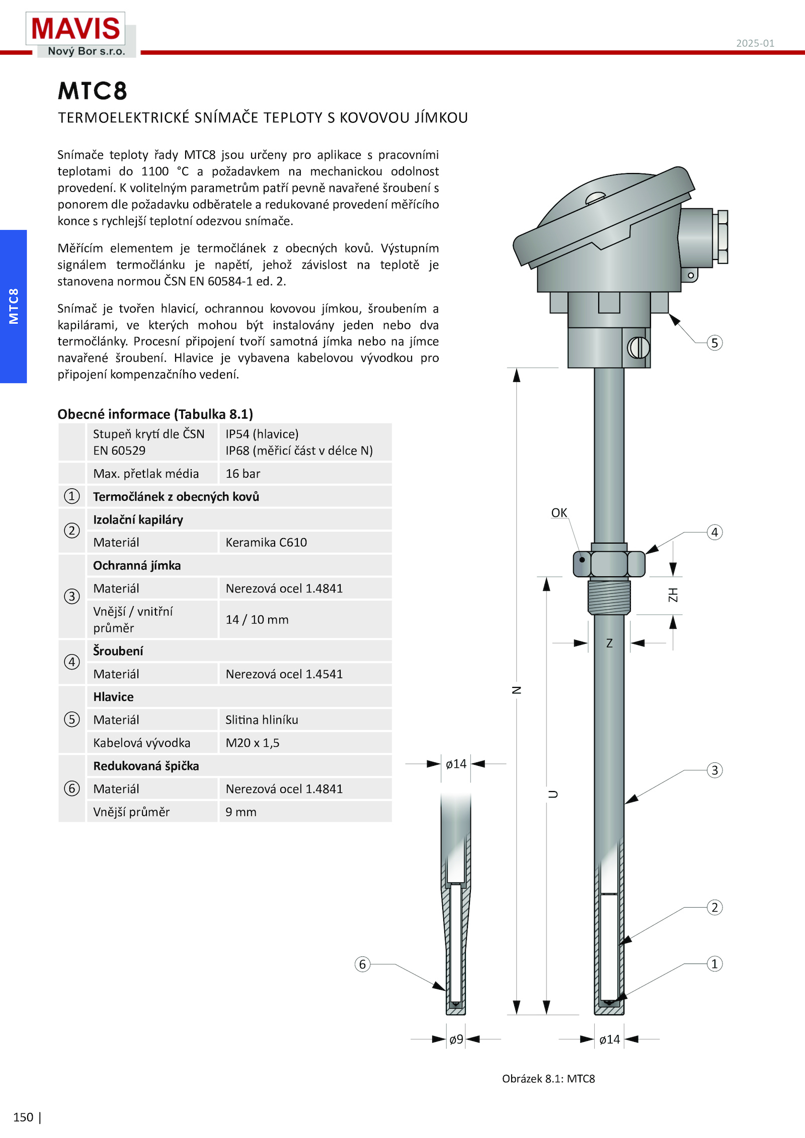 Snímače teploty řady MTC8 jsou určeny pro aplikace pracovními