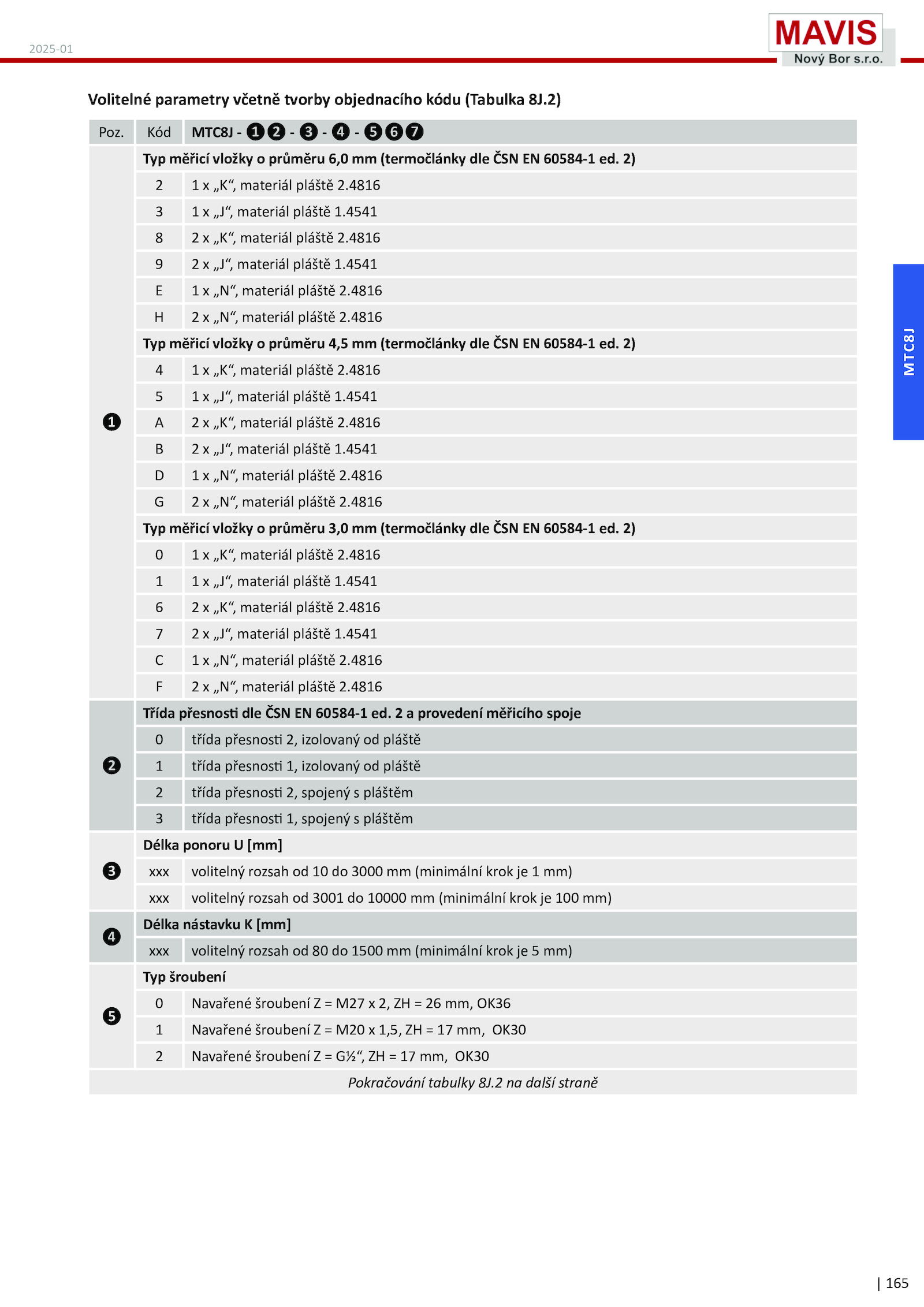 9 „J“, materiál pláště 1. Kód MTC8J ❺❻❼