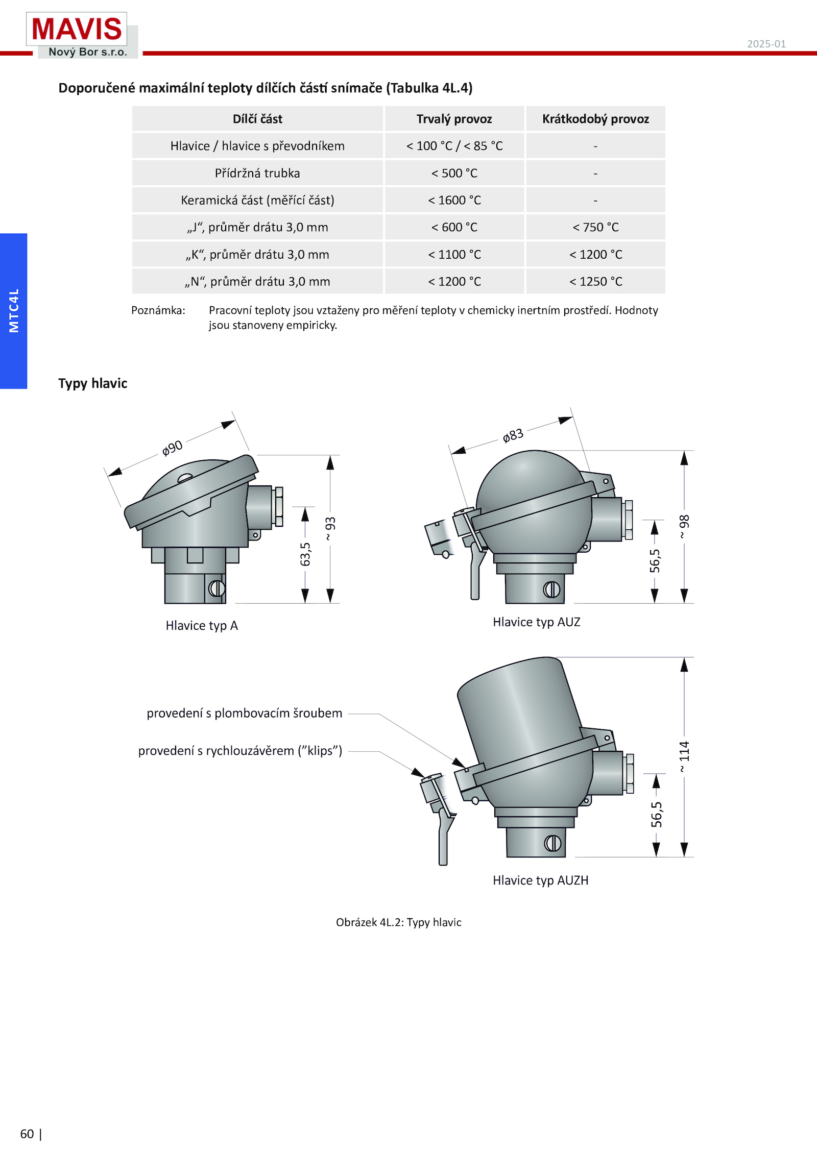 Doporučené maximální teploty dílčích čás� snímače (Tabulka 4L.4)