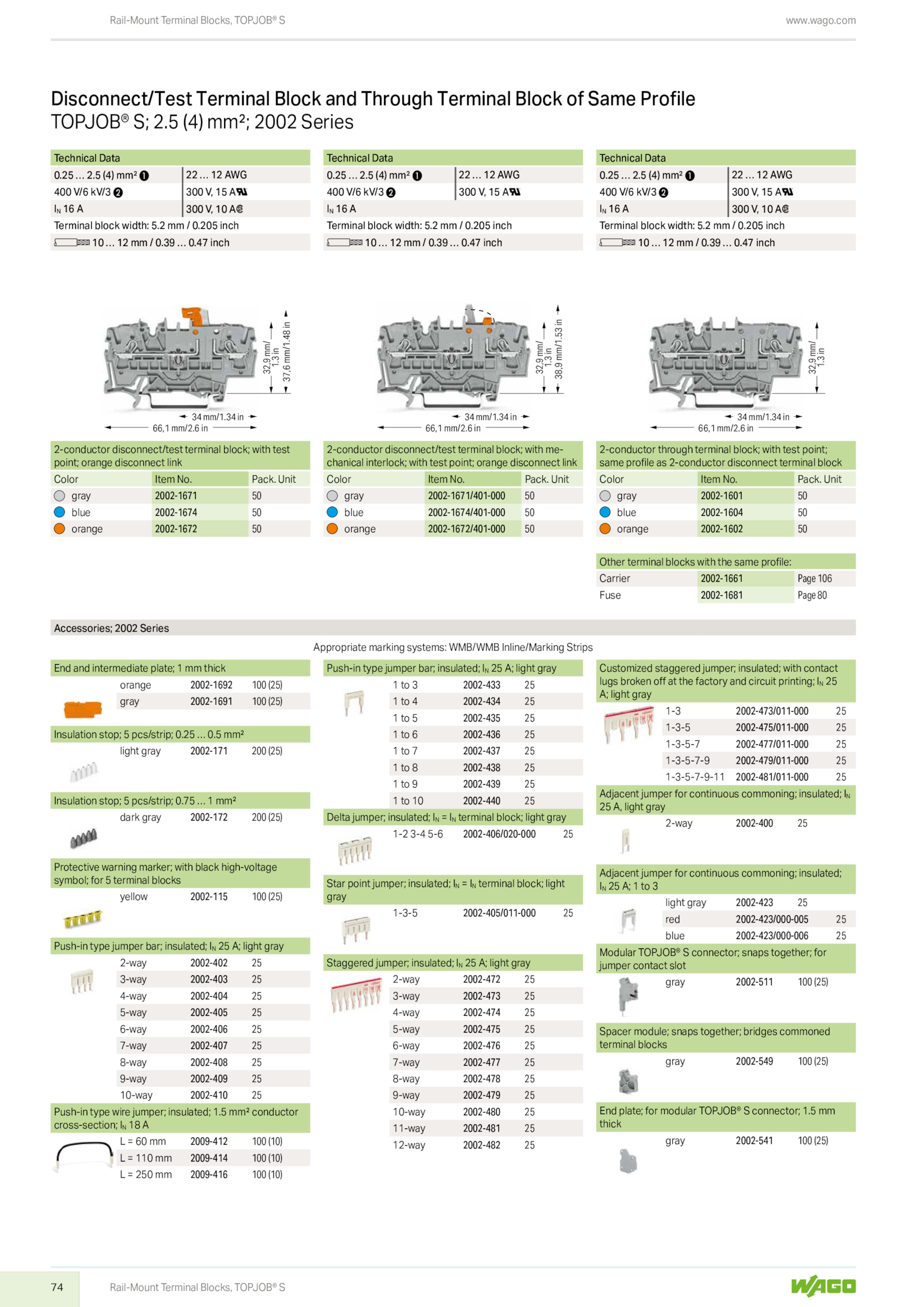 66,1 mm/2.5 (4) mm² AWG 0.39 0.5 (4) mm²; 2002 Series