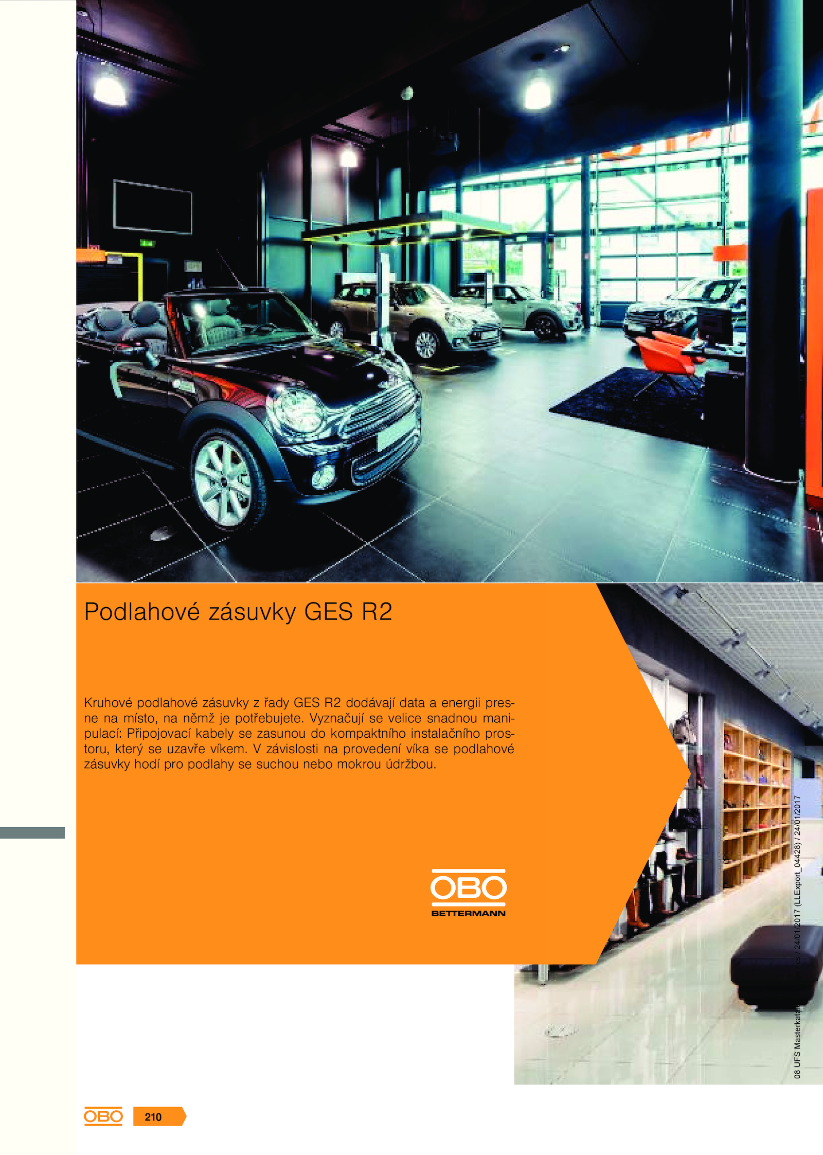 závislosti provedení víka podlahové zásuvky hodí pro podlahy suchou nebo mokrou údržbou.08 UFS Masterkatalog Länder / cs / 24/01/2017 (LLExport_04428) / 24/01/2017 Podlahové zásuvky GES R2 Kruhové podlahové zásuvky řady GES dodávají data energii pres- ne místo, němž potřebujete. 08 UFS Masterkatalog Länder / cs / 24/01/2017 (LLExport_04428) / 24/01/2017 210 . Vyznačují velice snadnou mani- pulací: Připojovací kabely zasunou kompaktního instalačního pros- toru, který uzavře víkem