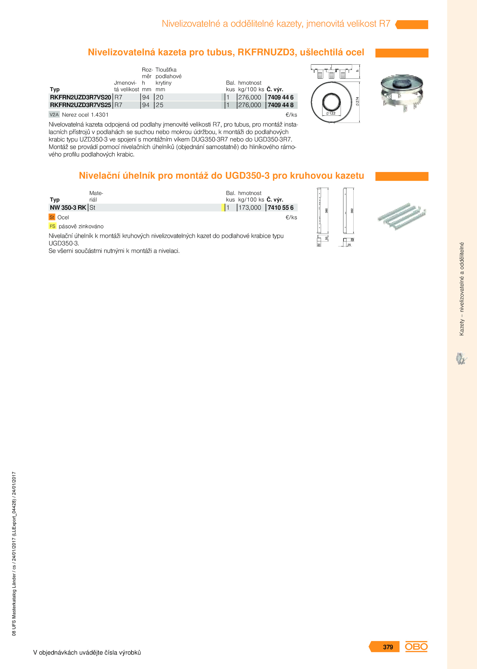 Nivelovatelná kazeta odpojená podlahy jmenovité velikosti R7, pro tubus, pro montáž insta-