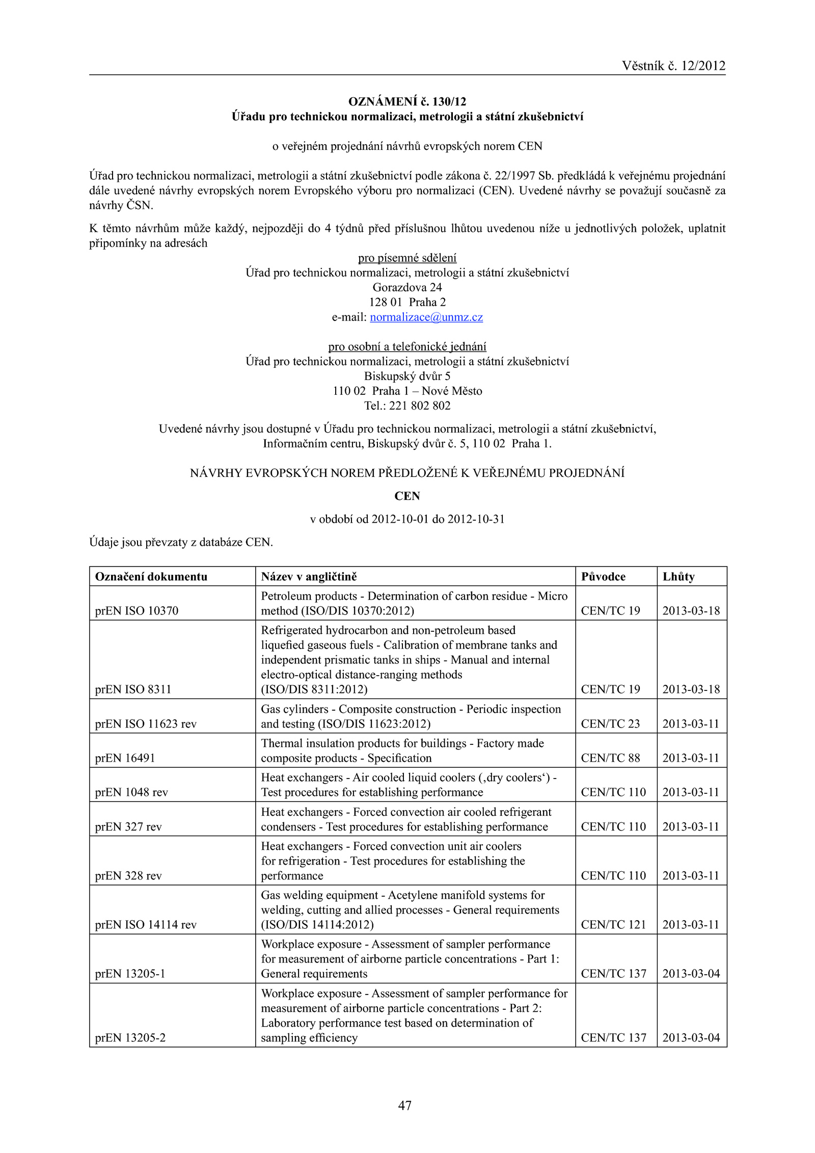 Uvedené návrhy jsou dostupné Úřadu pro technickou normalizaci, metrologii státní zkušebnictví,