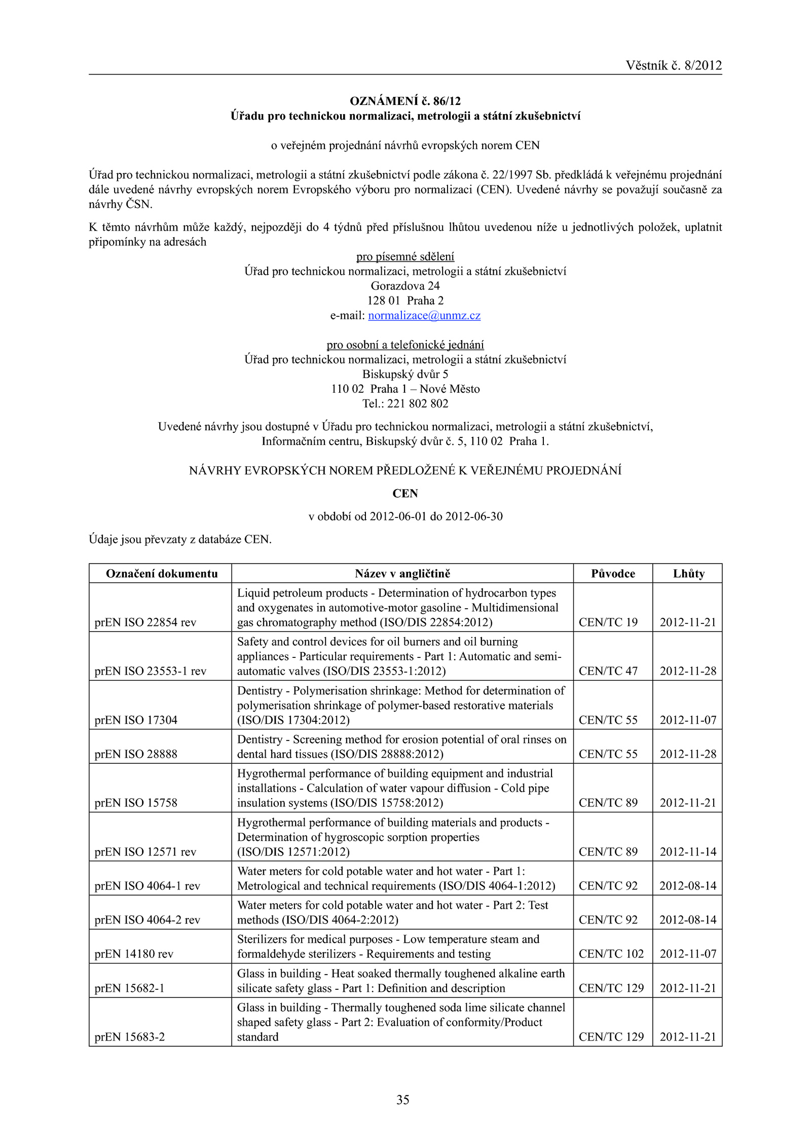 Uvedené návrhy jsou dostupné Úřadu pro technickou normalizaci, metrologii státní zkušebnictví,