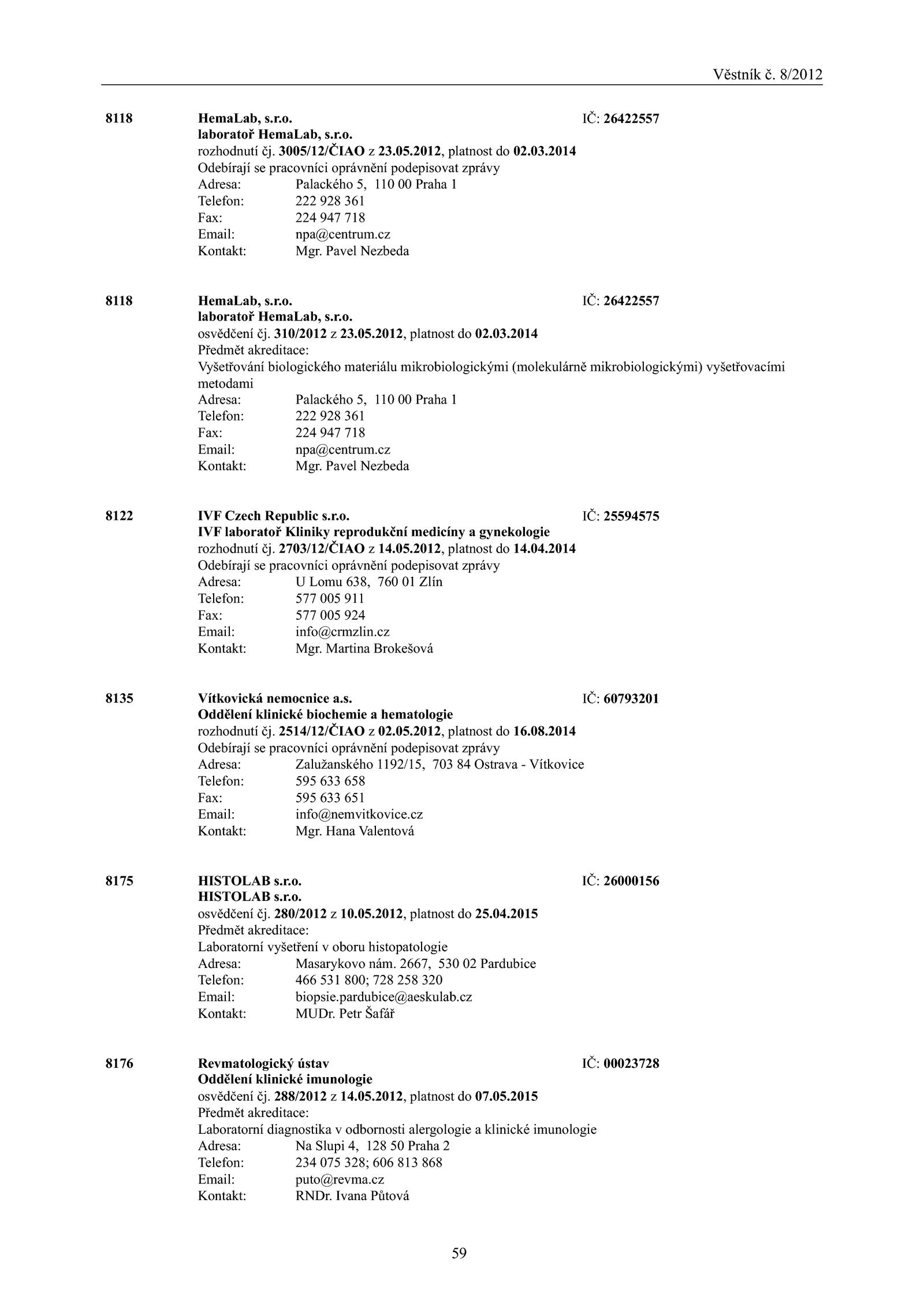 Email: info@nemvitkovice. 2703/12/ČIAO 14.o.Věstník 8/2012