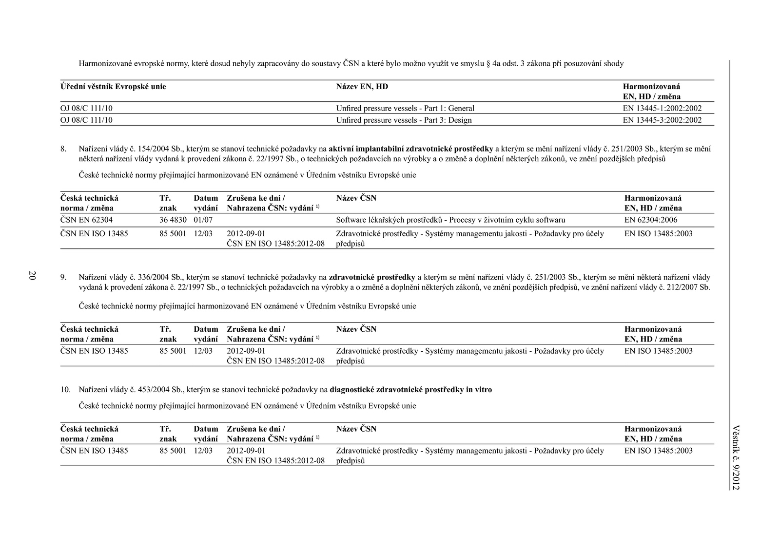 vydaná provedení zákona 22/1997 Sb., technických požadavcích výrobky změně doplnění některých zákonů, znění pozdějších předpisů, znění nařízení vlády 212/2007 Sb.9/2012