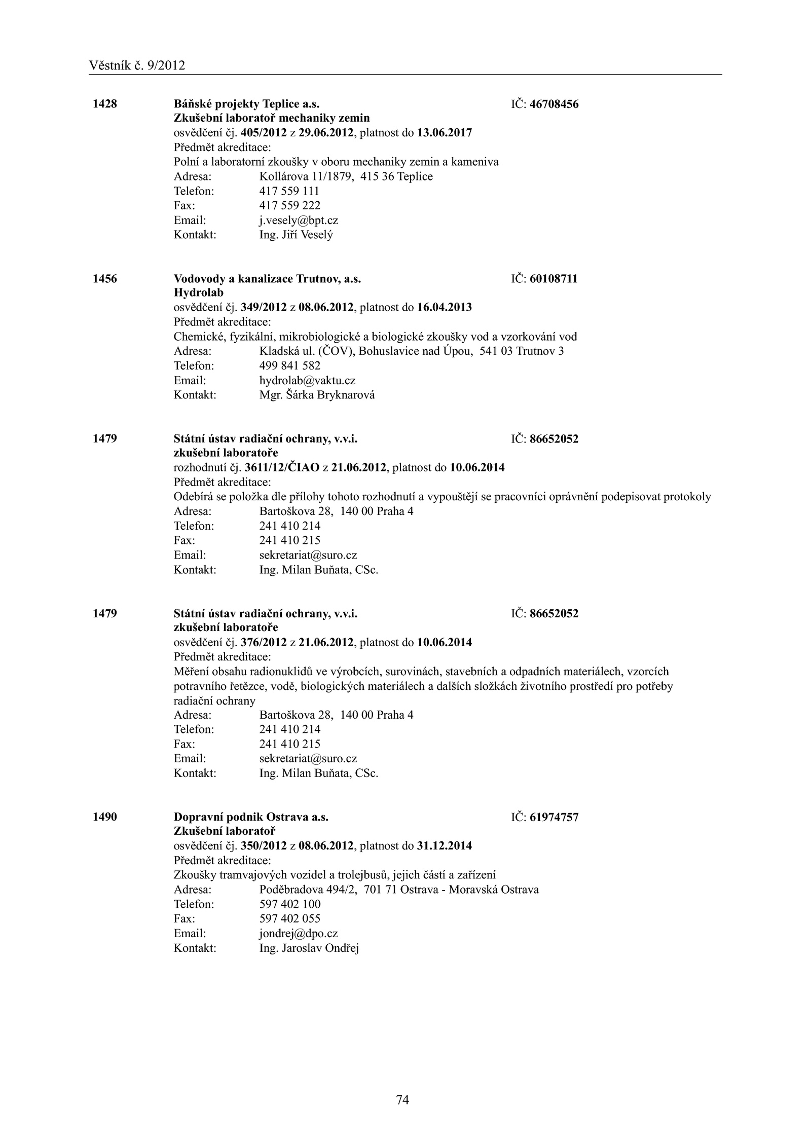 1479 Státní ústav radiační ochrany, v. 3611/12/ČIAO 21. Šárka Bryknarová