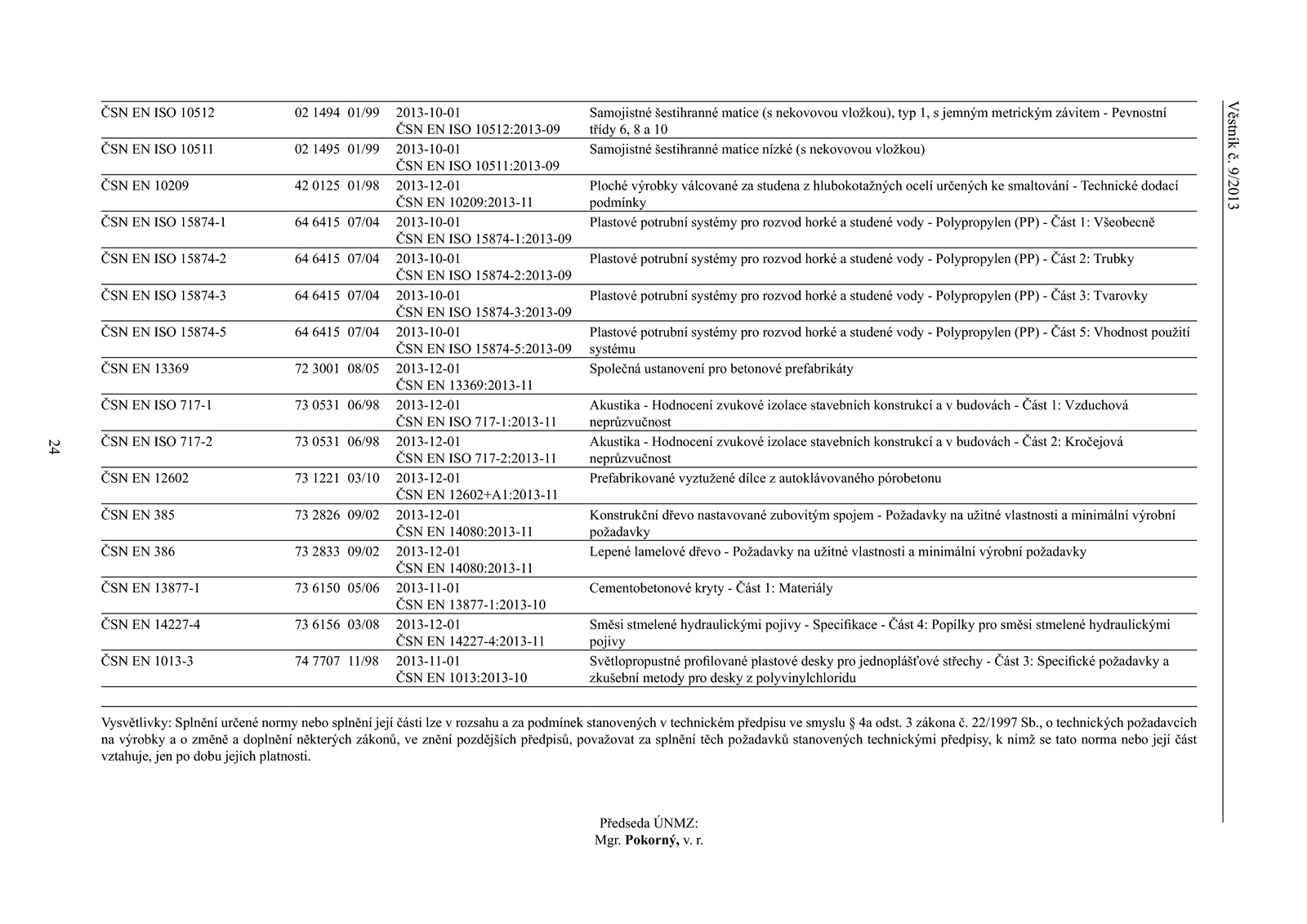 Mgr. Pokorný, r.Věstníkč. zákona 22/1997 Sb., technických požadavcích