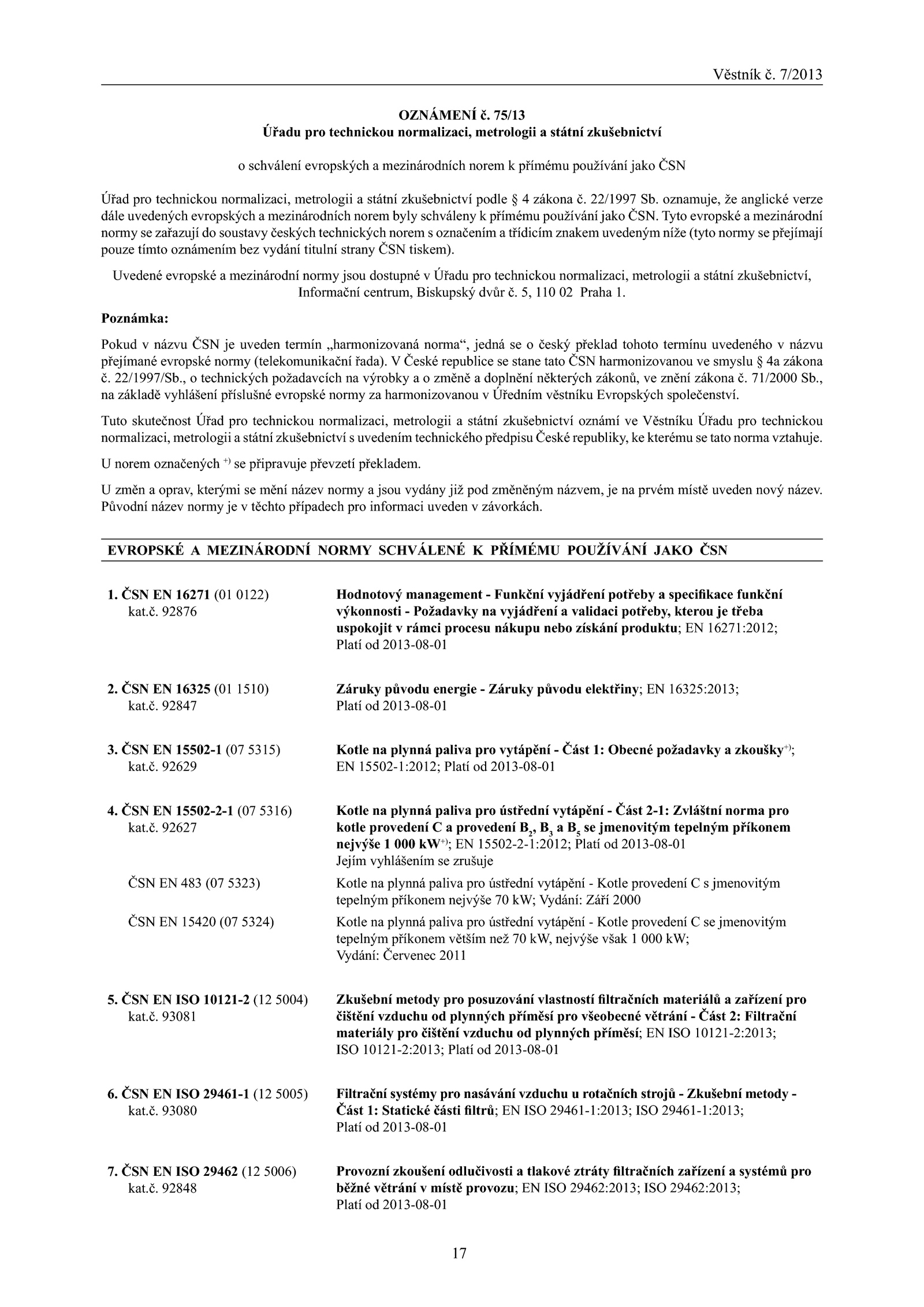 Tuto skutečnost Úřad pro technickou normalizaci, metrologii státní zkušebnictví oznámí Věstníku Úřadu pro technickou