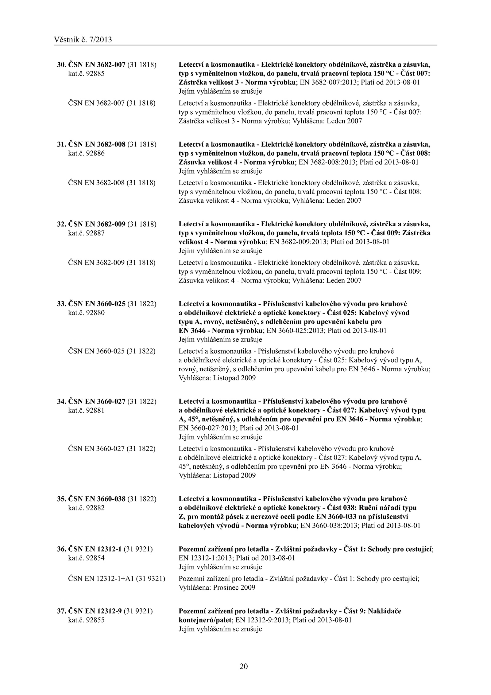 ČSN 3682-007 (31 1818) Letectví a kosmonautika Elektrické konektory obdélníkové, zástrčka a zásuvka,