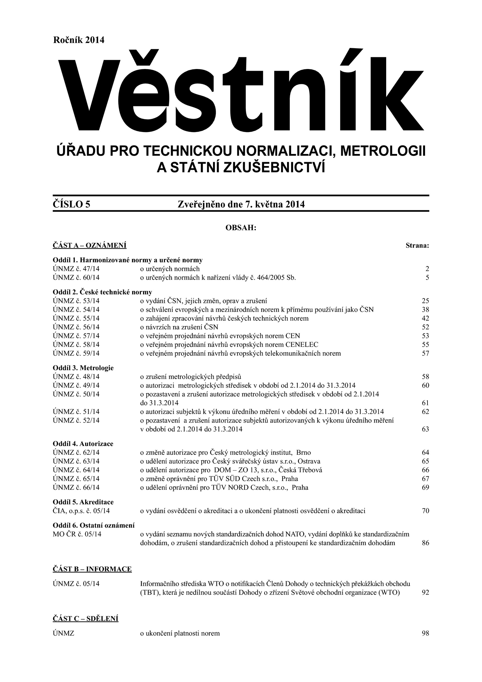 ÚNMZ 66/14 udělení oprávnění pro TÜV NORD Czech, s.2014 63