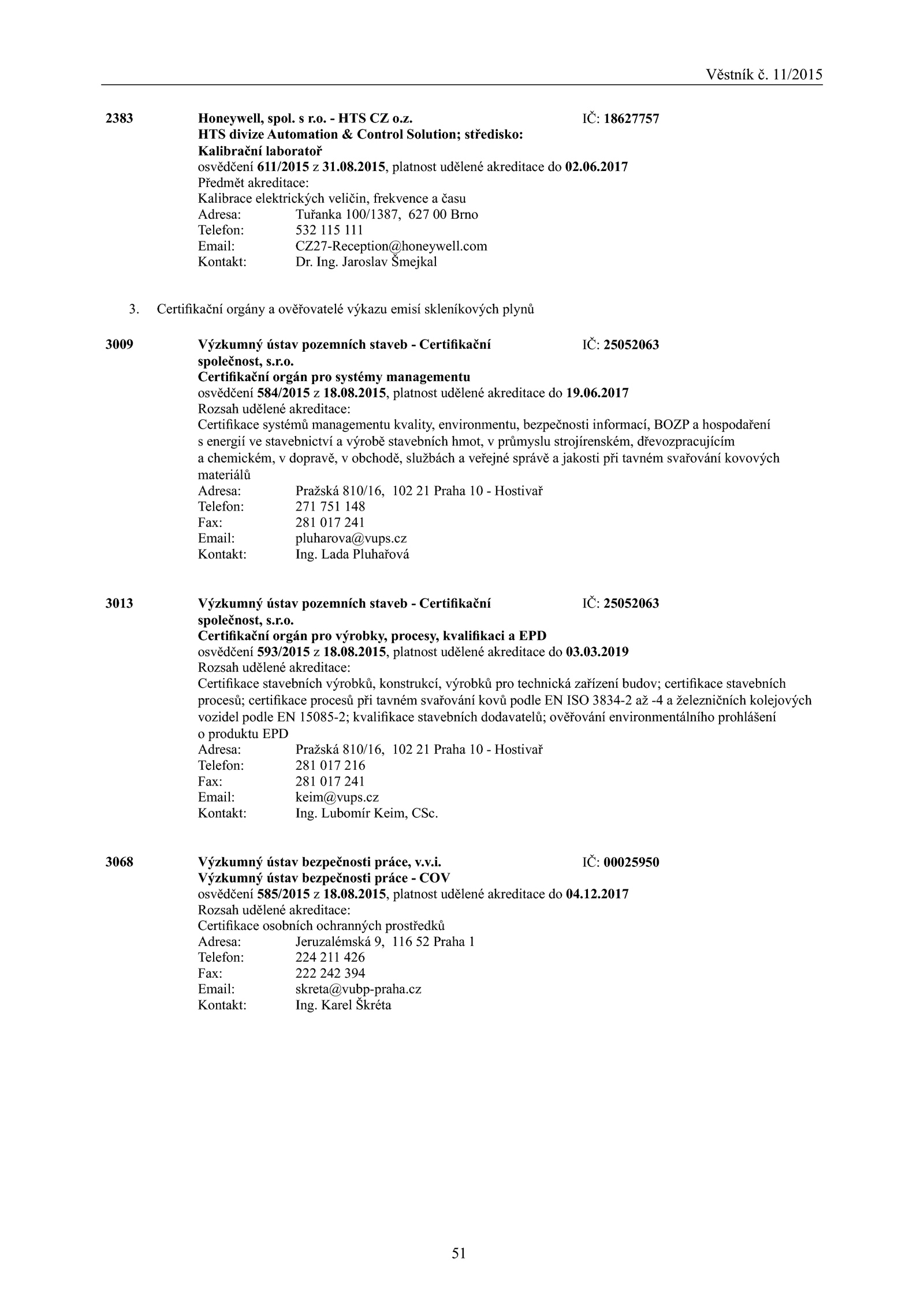 Email: CZ27-Reception@honeywell.2015, platnost udělené akreditace 03. IČ: 00025950