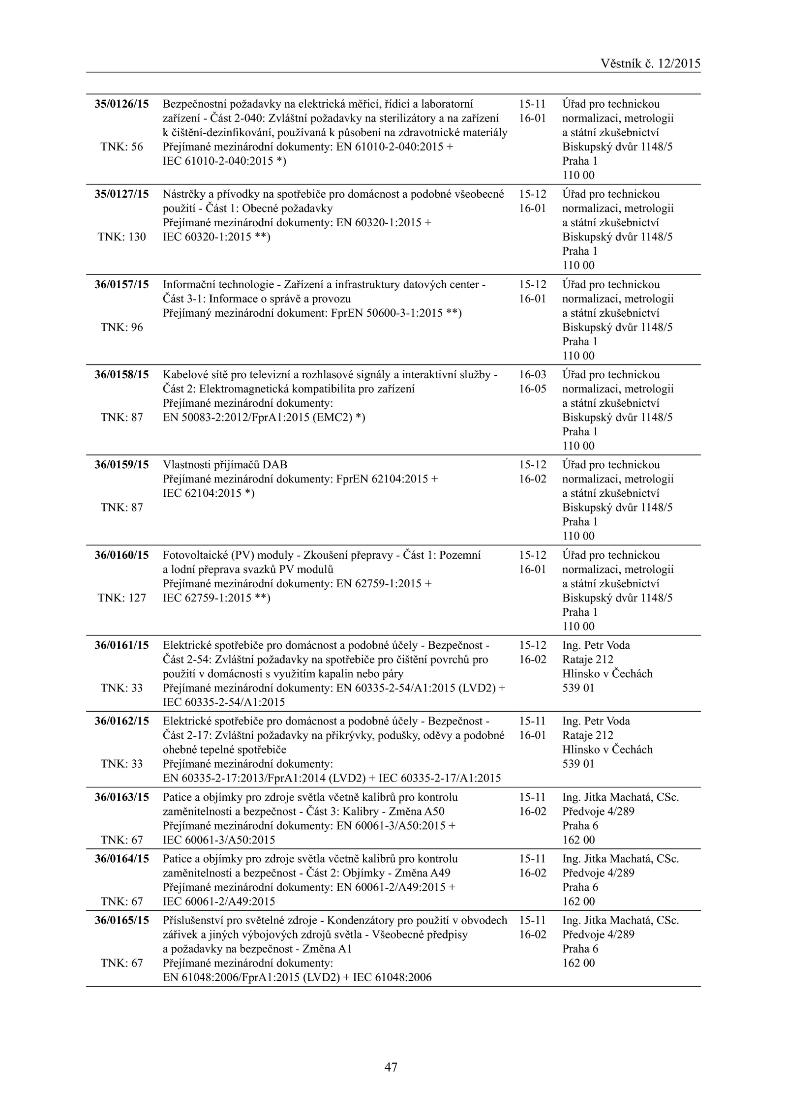 Přejímané mezinárodní dokumenty: 60061-2/A49:2015 +