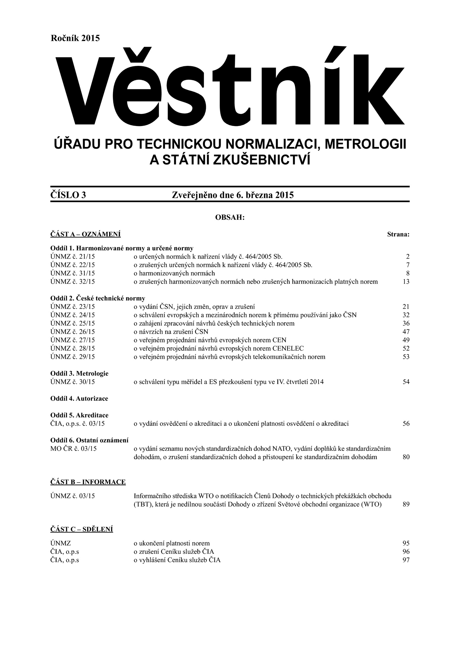 ÚNMZ 21/15 určených normách nařízení vlády 464/2005 Sb.p. 2