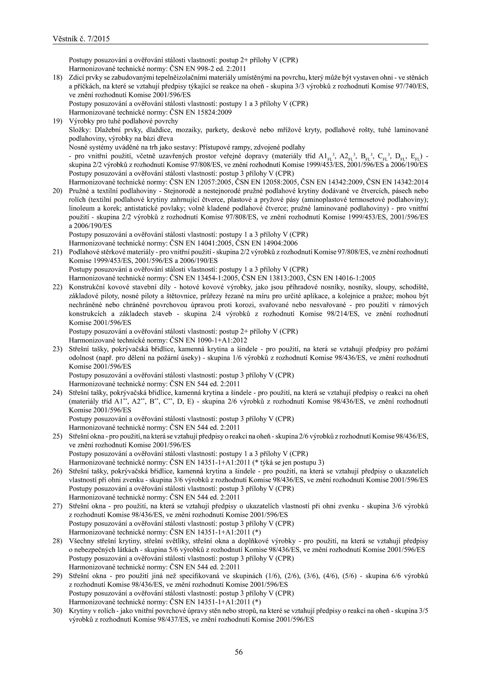 Harmonizované technické normy: ČSN 544 ed. pro dělení požární úseky) skupina 1/6 výrobků z rozhodnutí Komise 98/436/ES, znění rozhodnutí