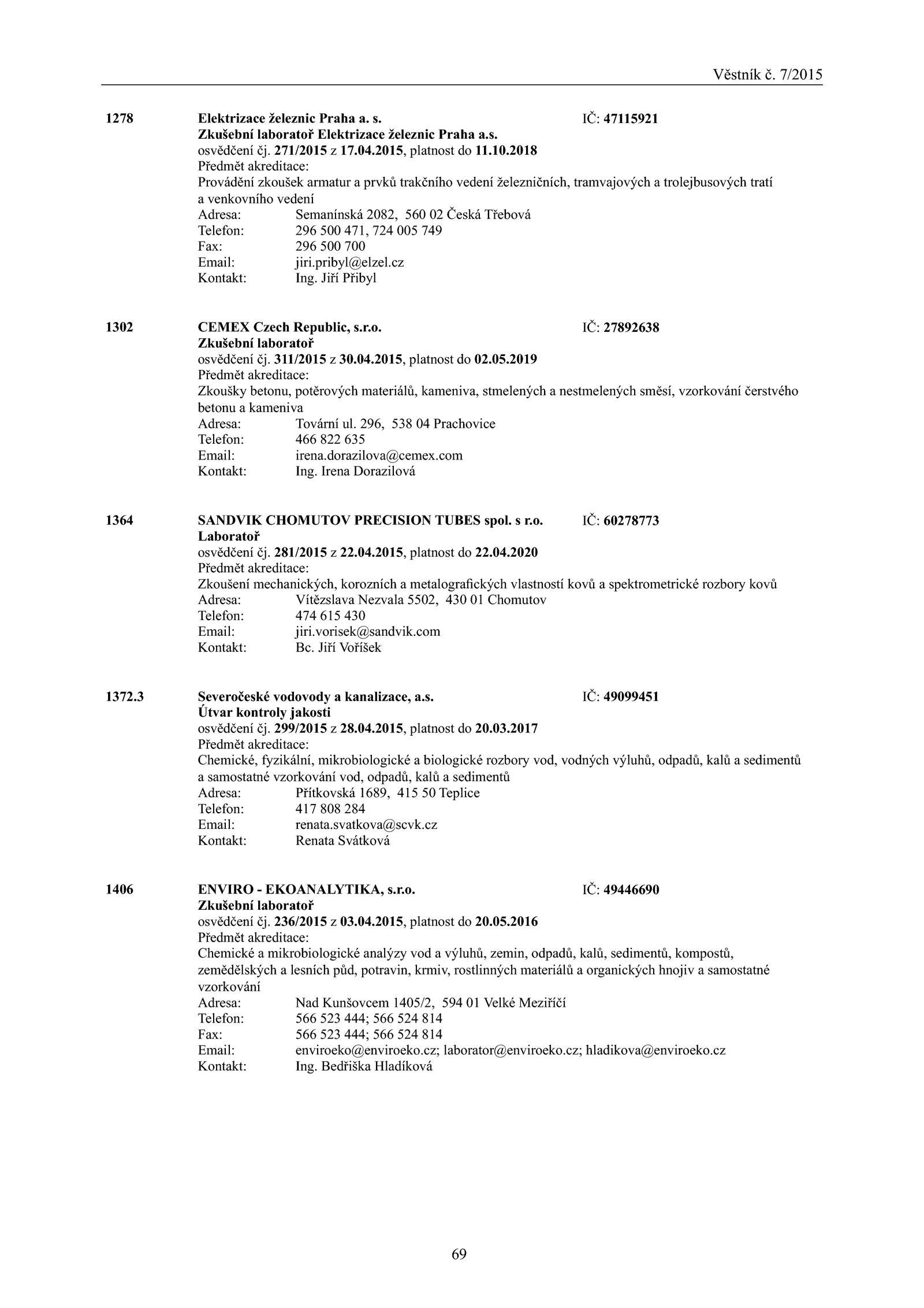 osvědčení čj.o.r.cz; laborator@enviroeko. 299/2015 z 28. s r. Irena Dorazilová