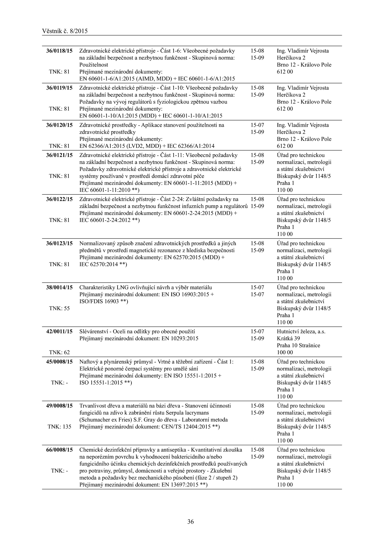 Přejímané mezinárodní dokumenty: 62570:2015 (MDD) +