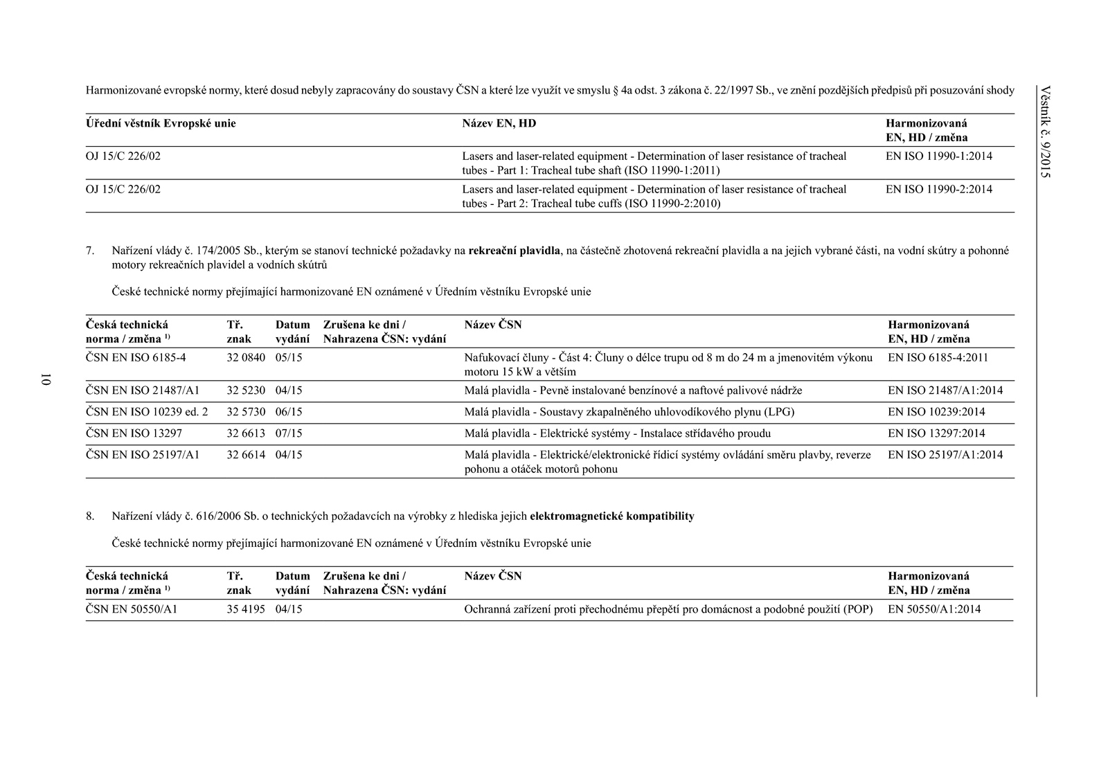 Harmonizované evropské normy, které dosud nebyly zapracovány soustavy ČSN a které lze využít smyslu odst. zákona 22/1997 Sb., kterým stanoví technické požadavky rekreační plavidla, částečně zhotovená rekreační plavidla a na jejich vybrané části, vodní skútry a pohonné