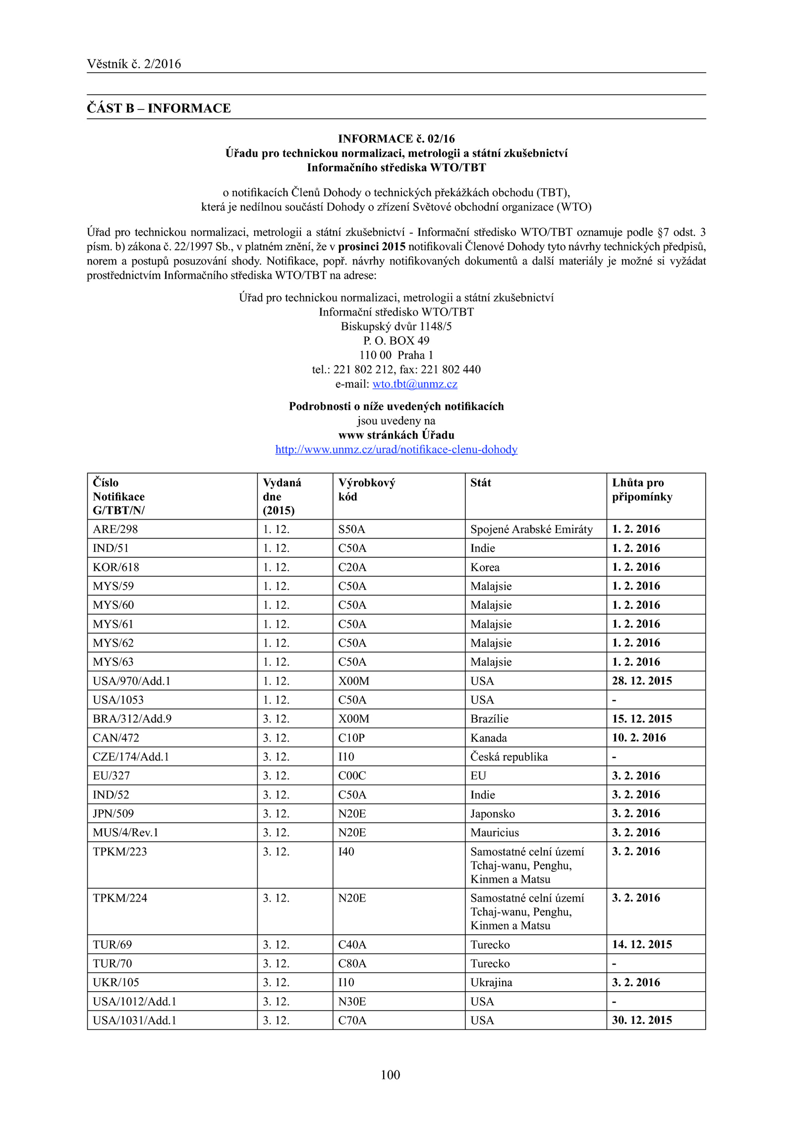 norem a postupů posuzování shody.1 12. Notifikace, popř.Věstník 2/2016