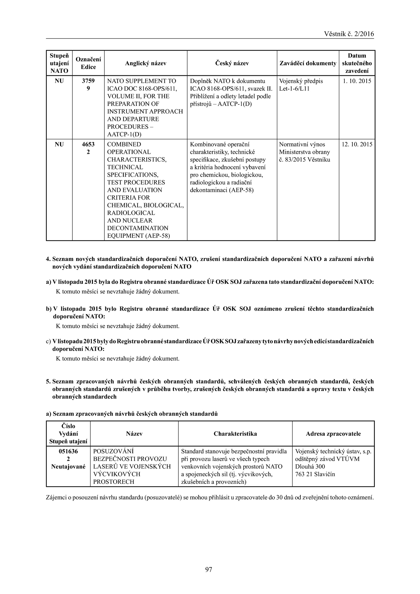 b) listopadu 2015 bylo Registru obranné standardizace OSK SOJ oznámeno zrušení těchto standardizačních