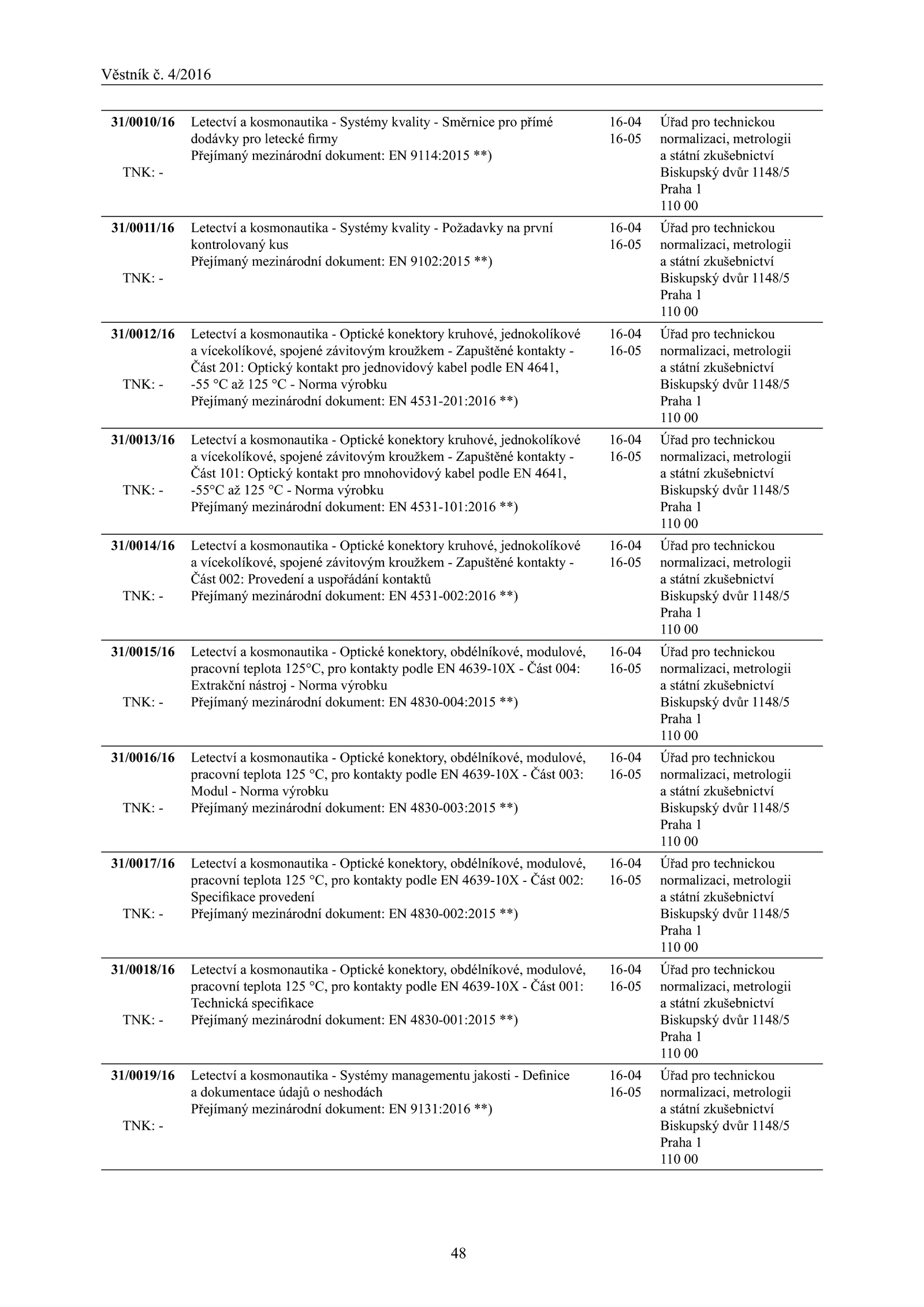 Přejímaný mezinárodní dokument: 4531-002:2016 **)
