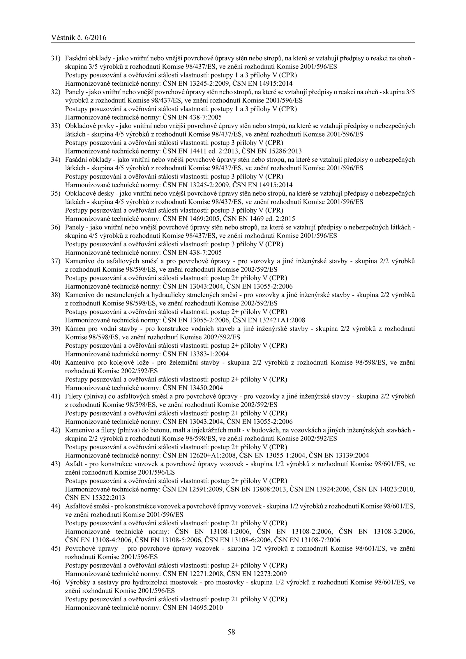 43) Asfalt pro konstrukce vozovek a povrchové úpravy vozovek skupina 1/2 výrobků z rozhodnutí Komise 98/601/ES, ve