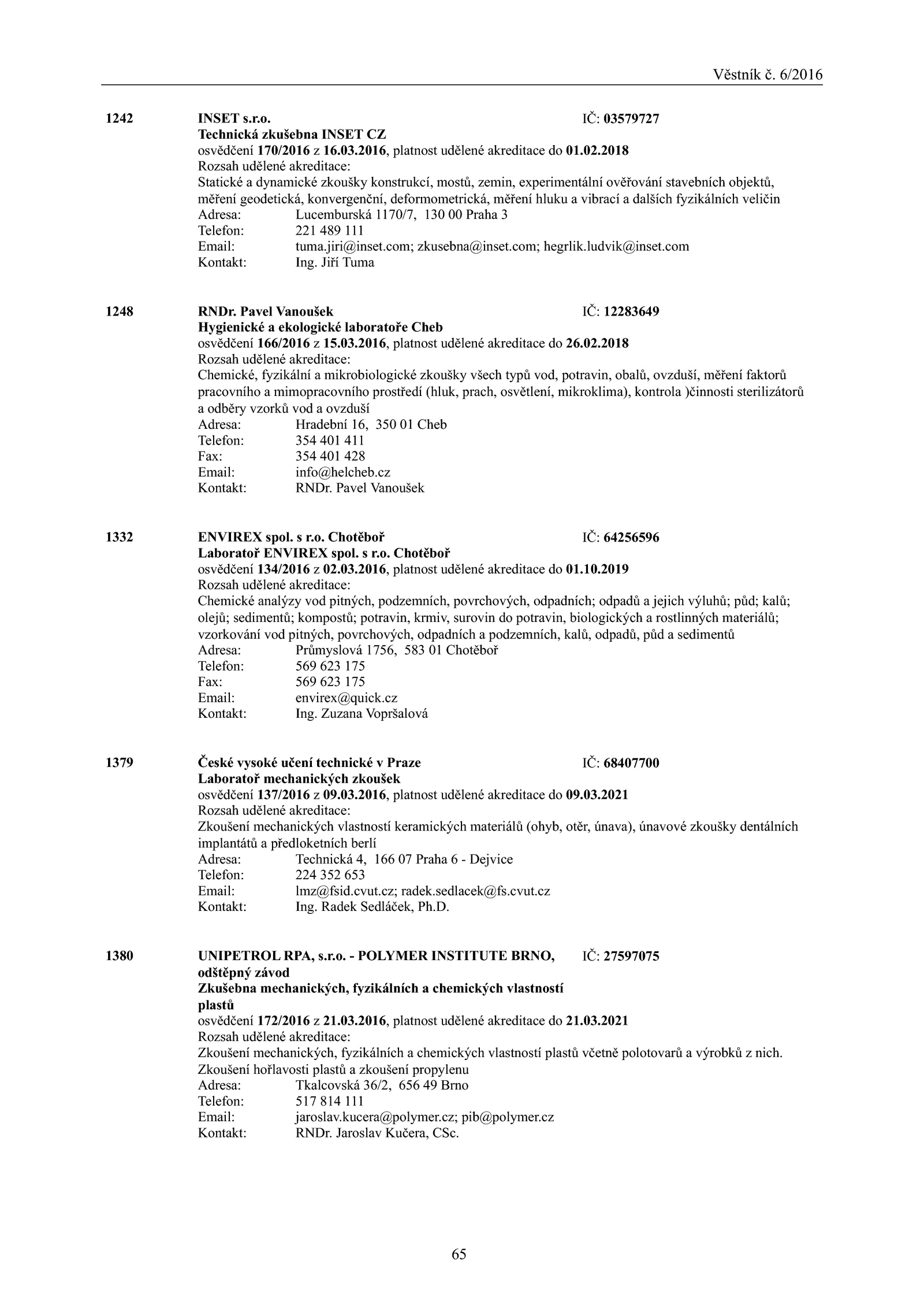 Kontakt: RNDr.com; hegrlik.Věstník 6/2016