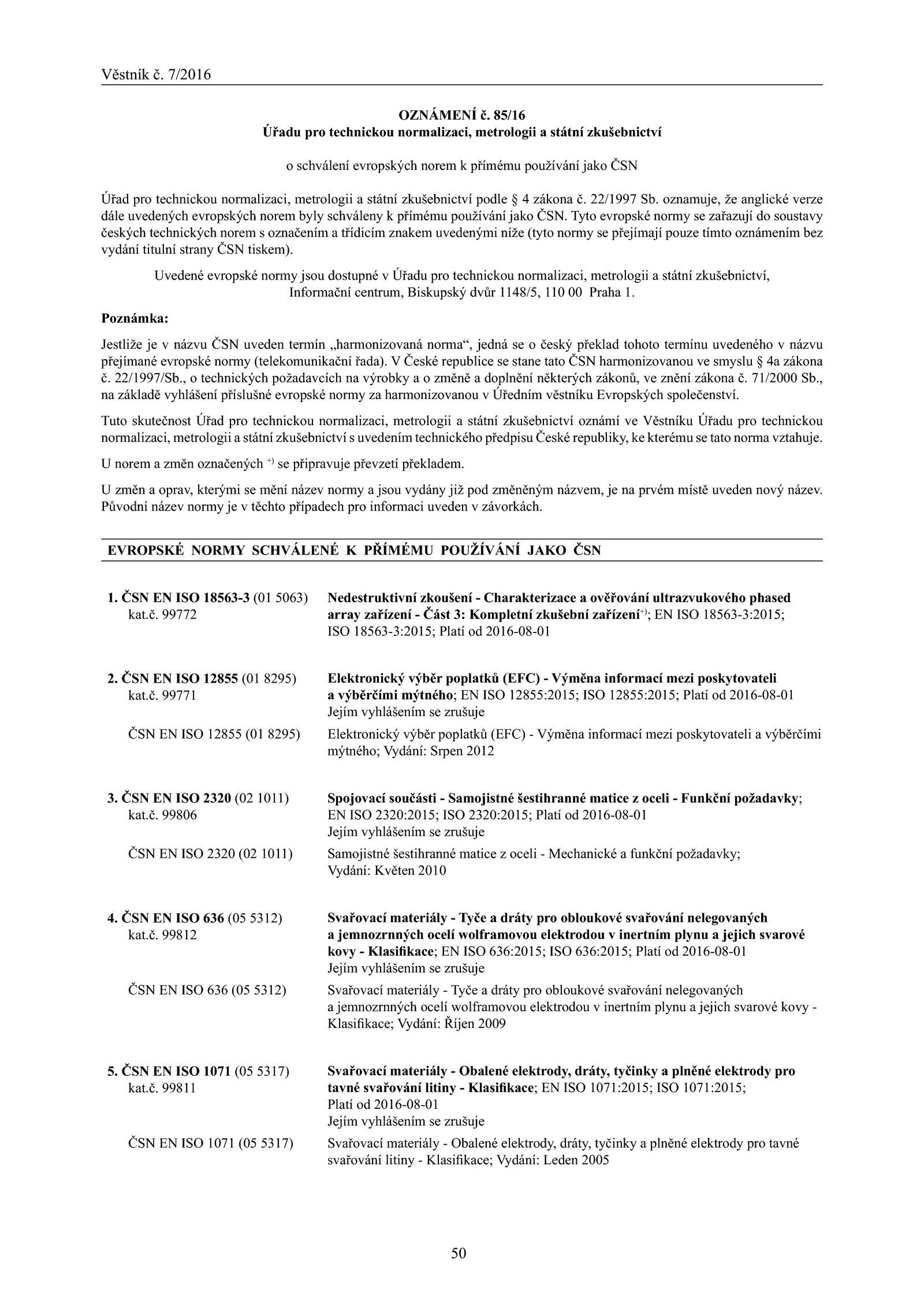 Tuto skutečnost Úřad pro technickou normalizaci, metrologii a státní zkušebnictví oznámí Věstníku Úřadu pro technickou
