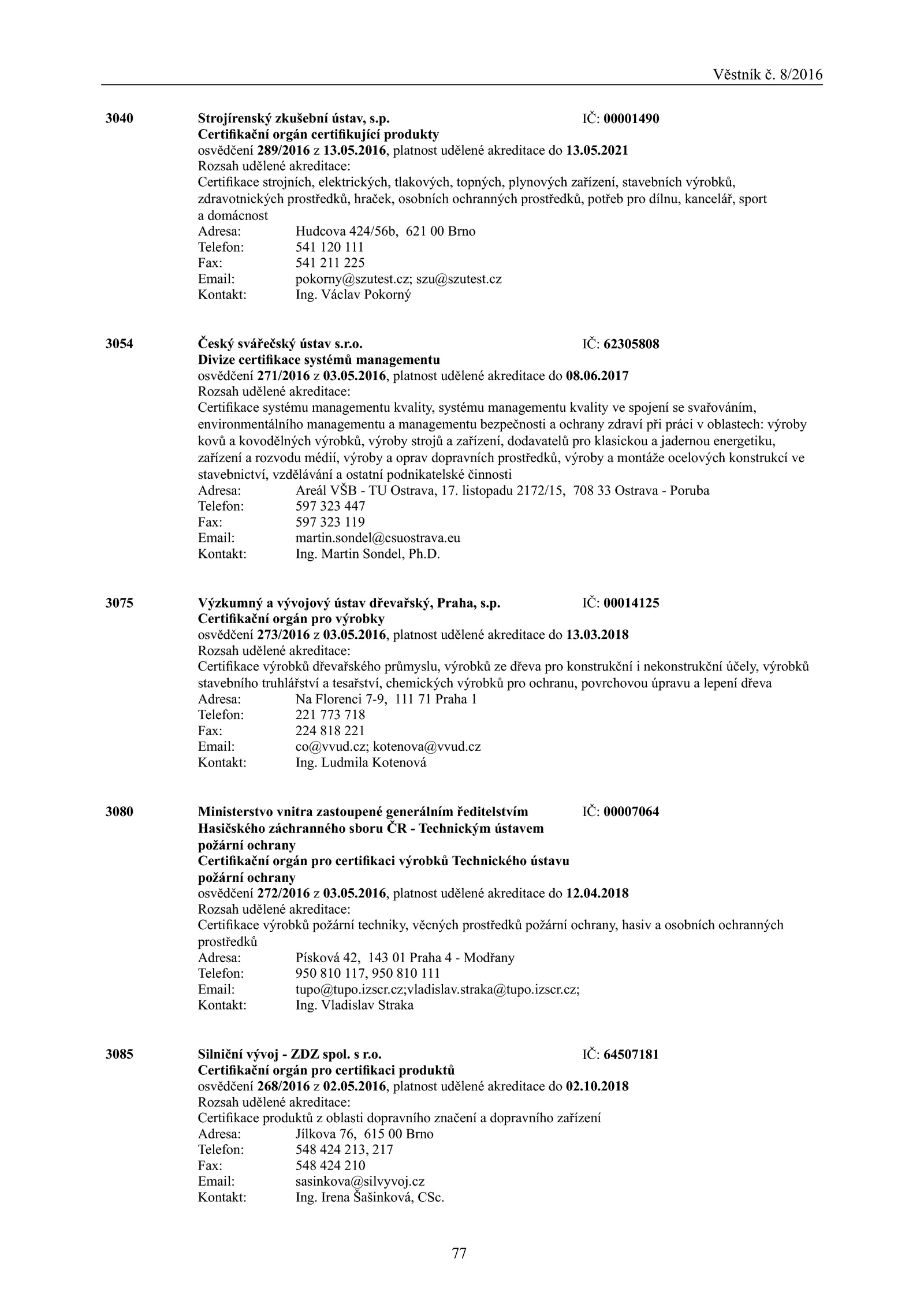 3040 Strojírenský zkušební ústav, s.05. IČ: 64507181