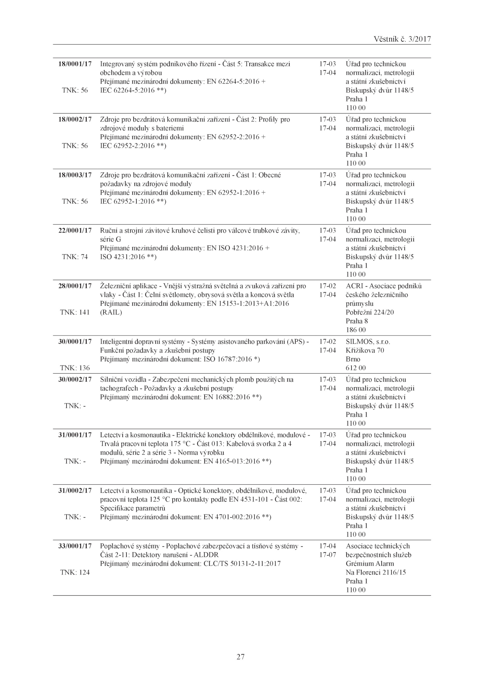 Přejímané mezinárodní dokumenty: ISO 4231:2016 +