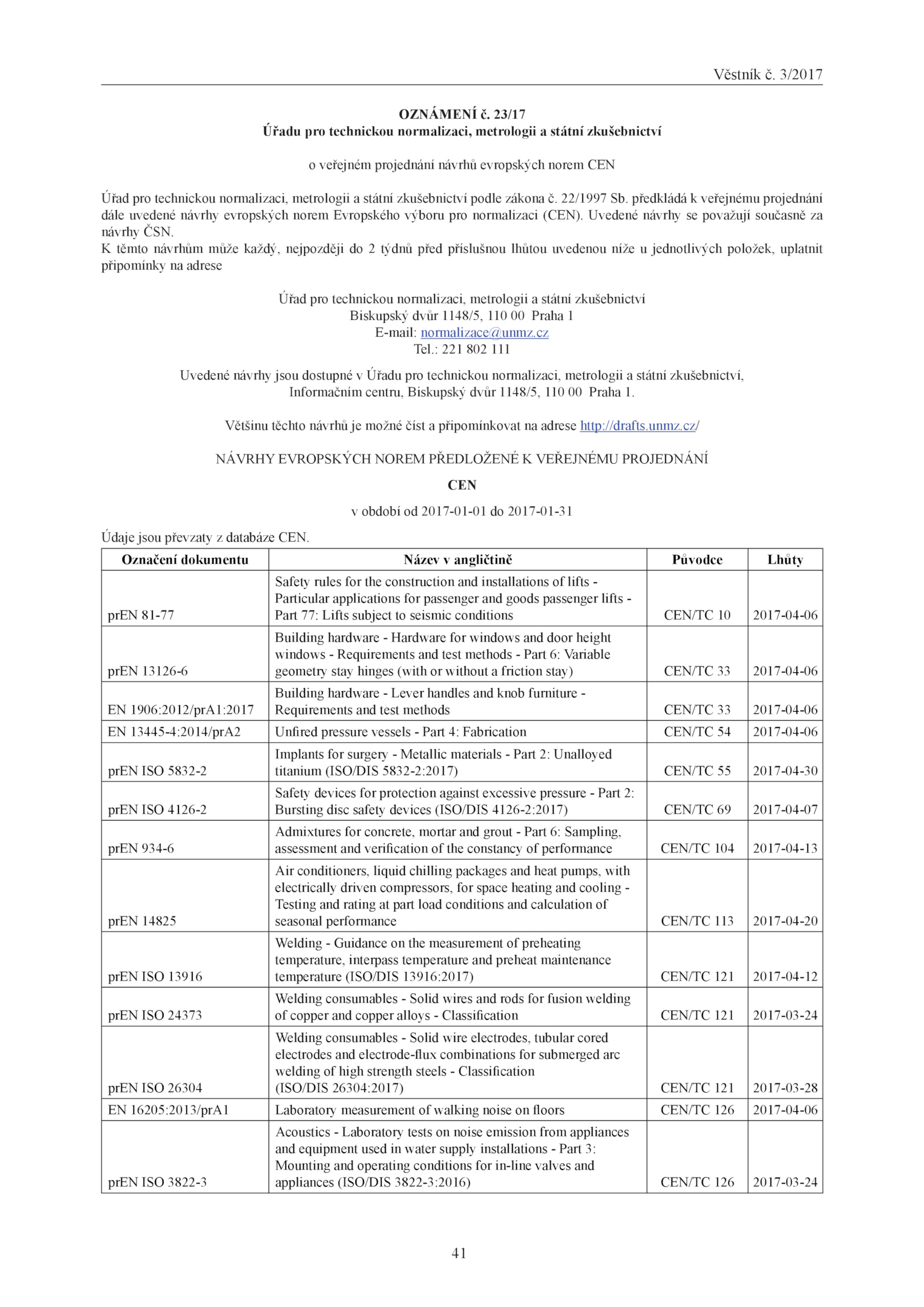Údaje jsou převzaty z databáze CEN. předkládá k veřejnému projednání