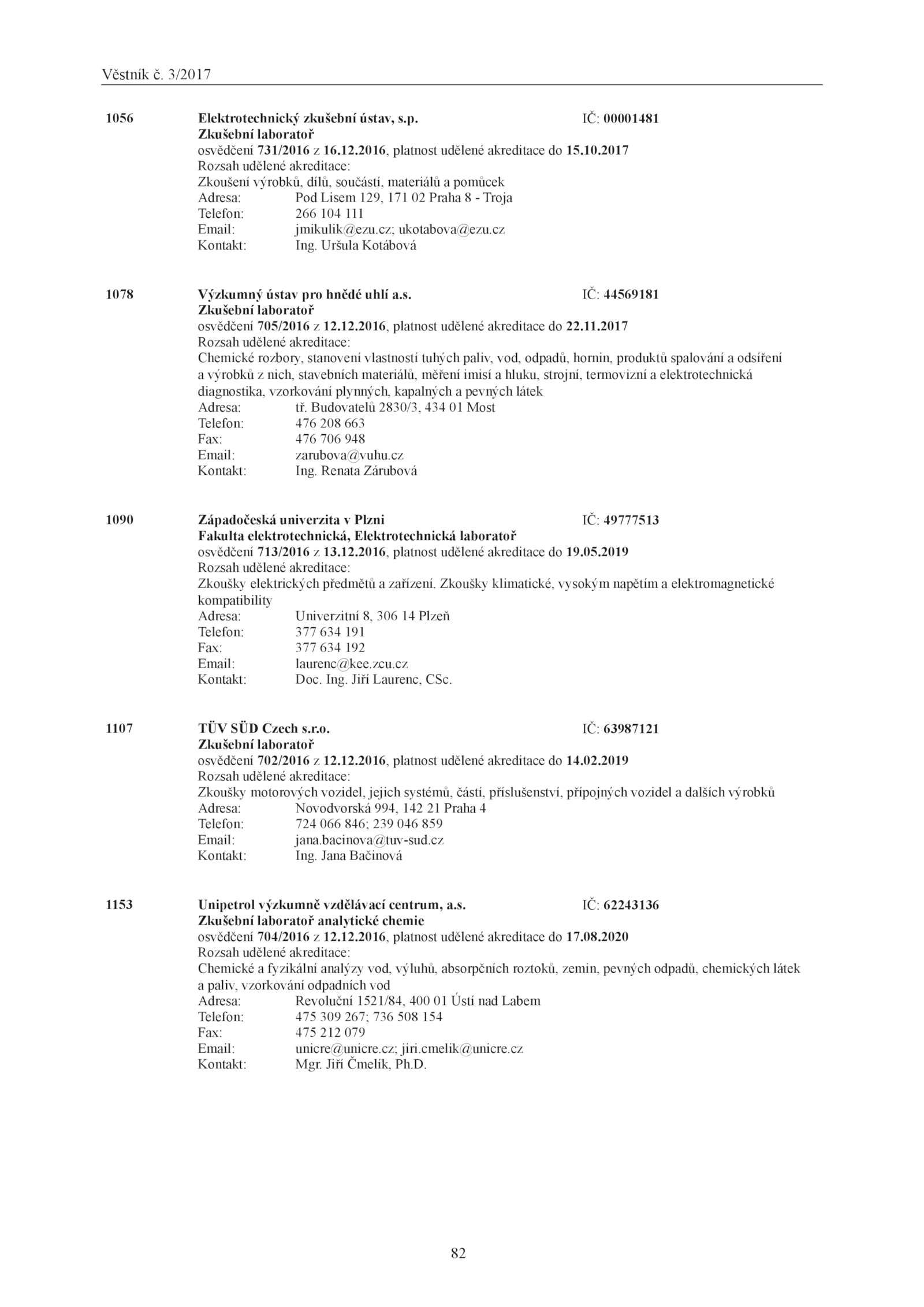 1107 TÜV SÜD Czech s.cmelik@unicre.12.2016, platnost udělené akreditace 22.s.12.05.cz; ukotabova@ezu.2016, platnost udělené akreditace 15.2016, platnost udělené akreditace 19.