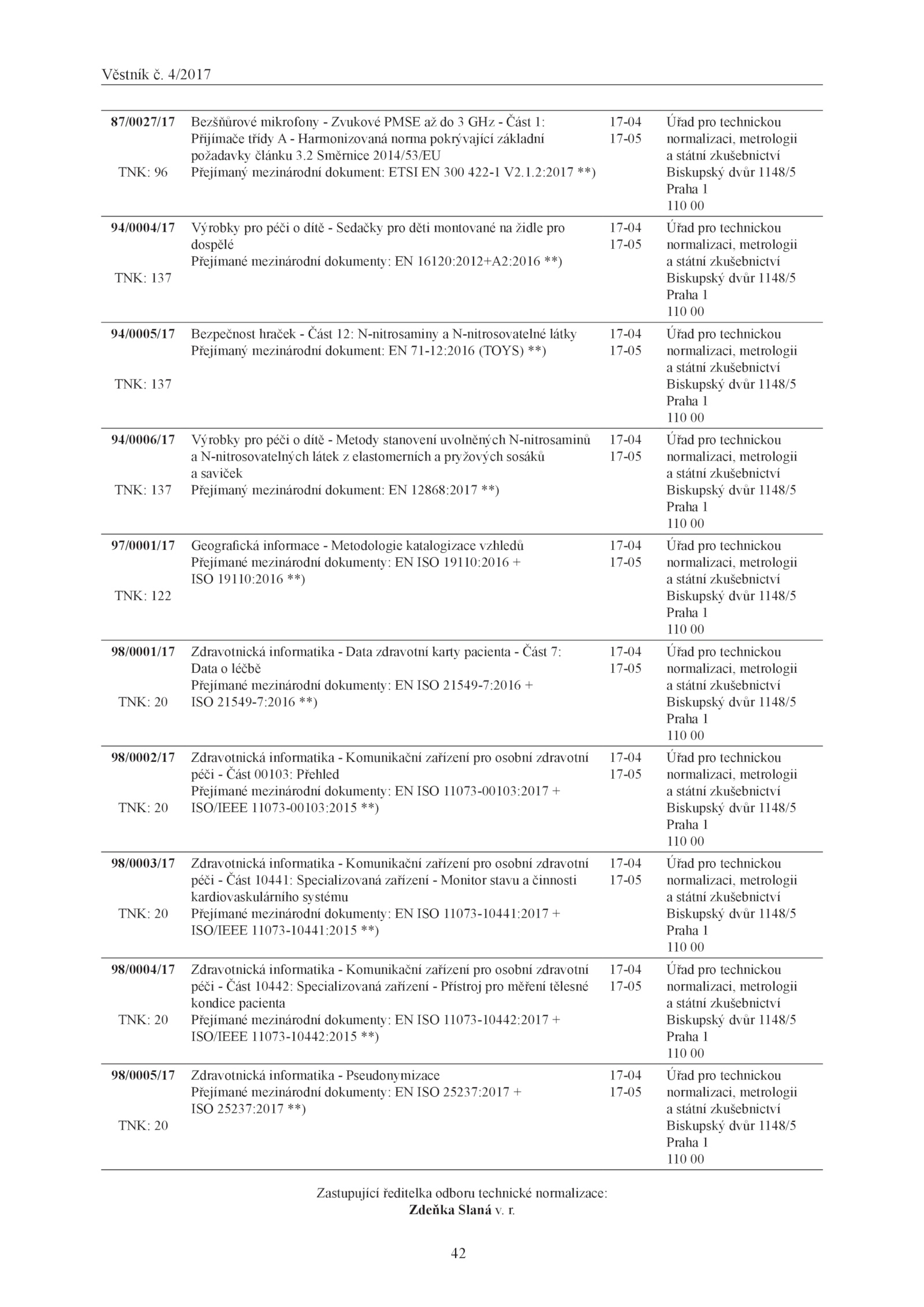 Zastupující ředitelka odboru technické normalizace: