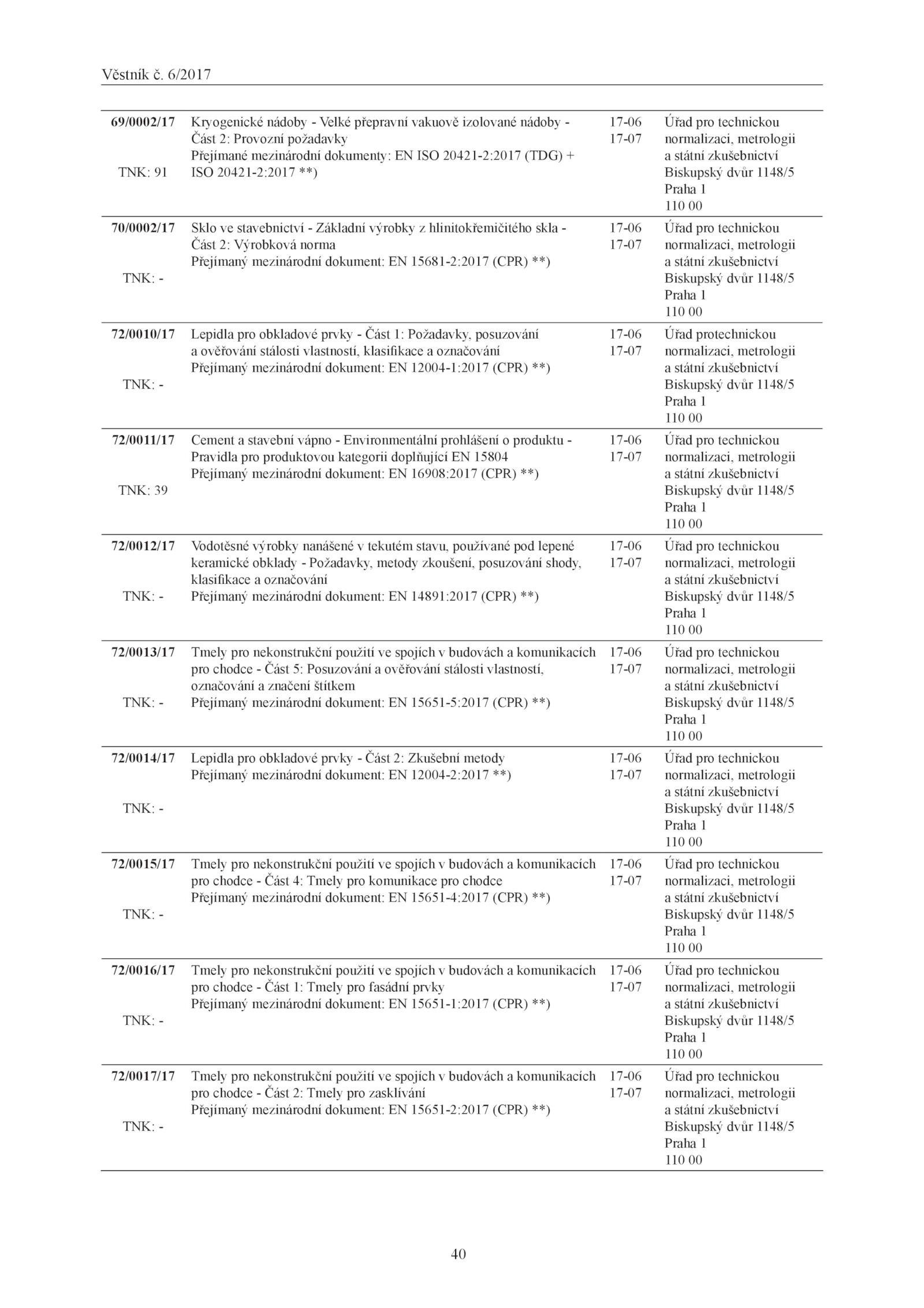 Přejímaný mezinárodní dokument: 15651-2:2017 (CPR) **)