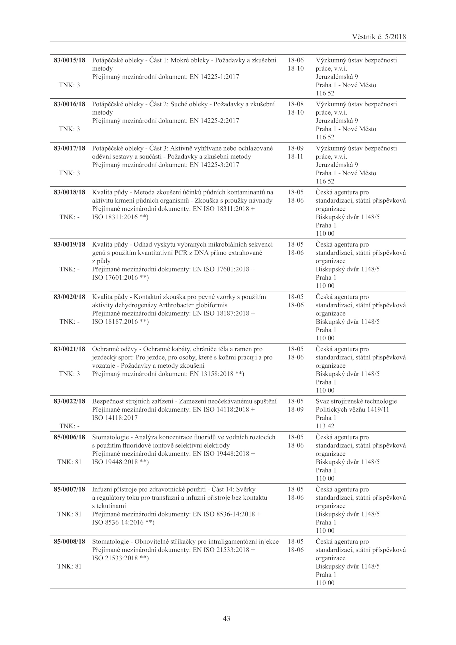 Přejímané mezinárodní dokumenty: ISO 14118:2018 +
