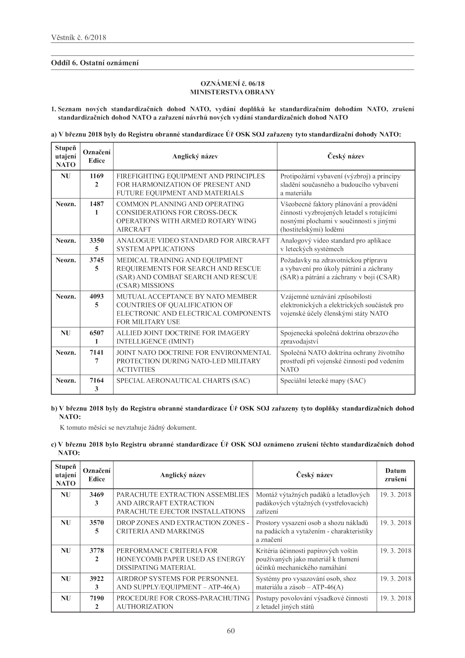 c) březnu 2018 bylo Registru obranné standardizace OSK SOJ oznámeno zrušení těchto standardizačních dohod