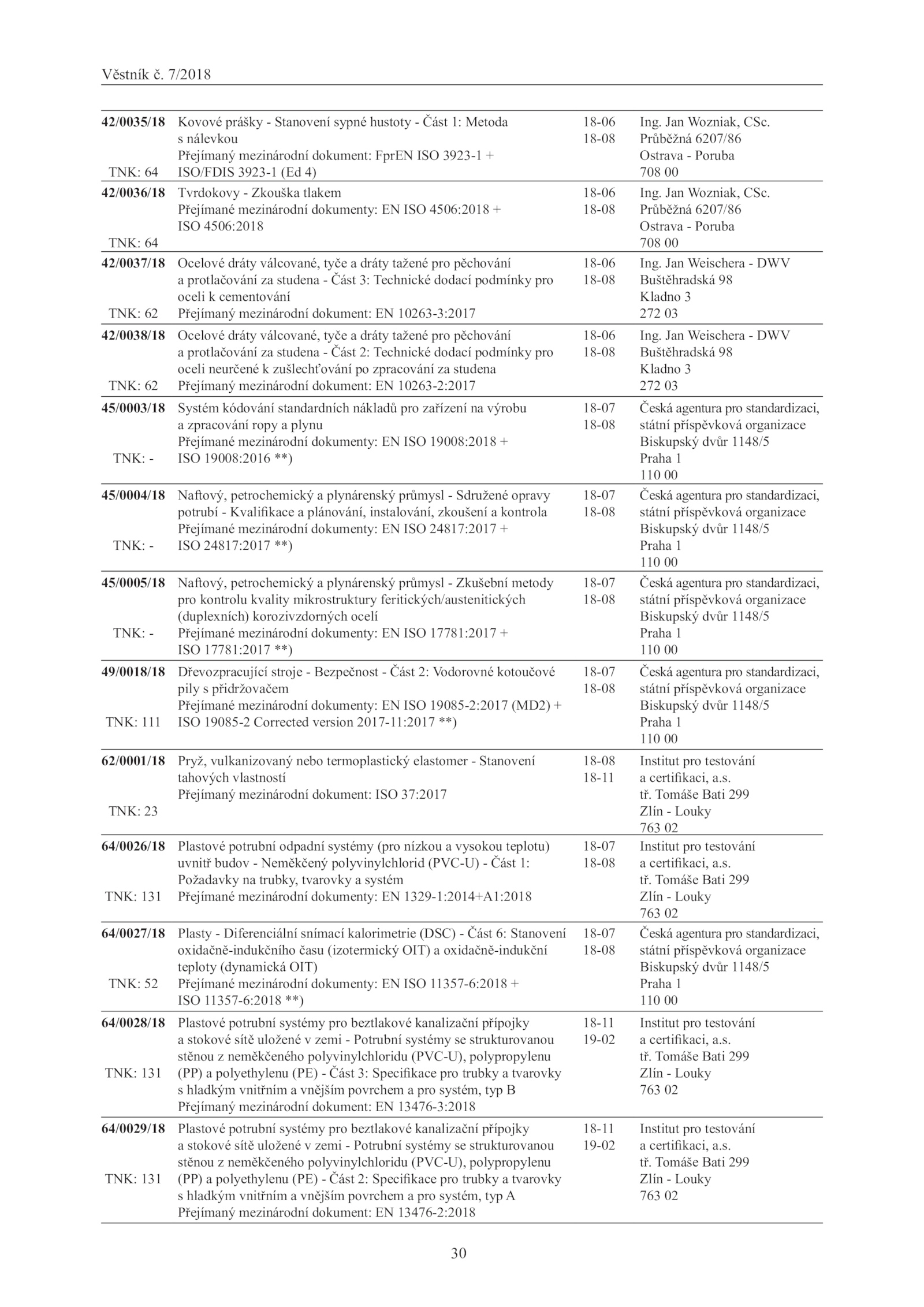 a certifikaci, a.s.Věstník 7/2018