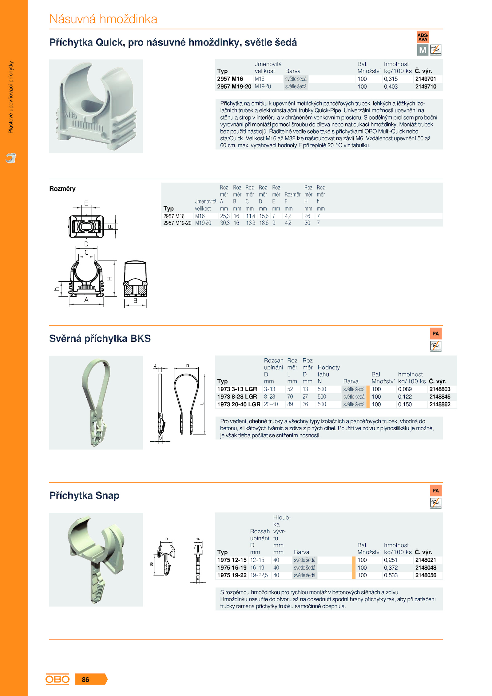 Bal. Řaditelné vedle sebe také příchytkami OBO Multi-Quick nebo