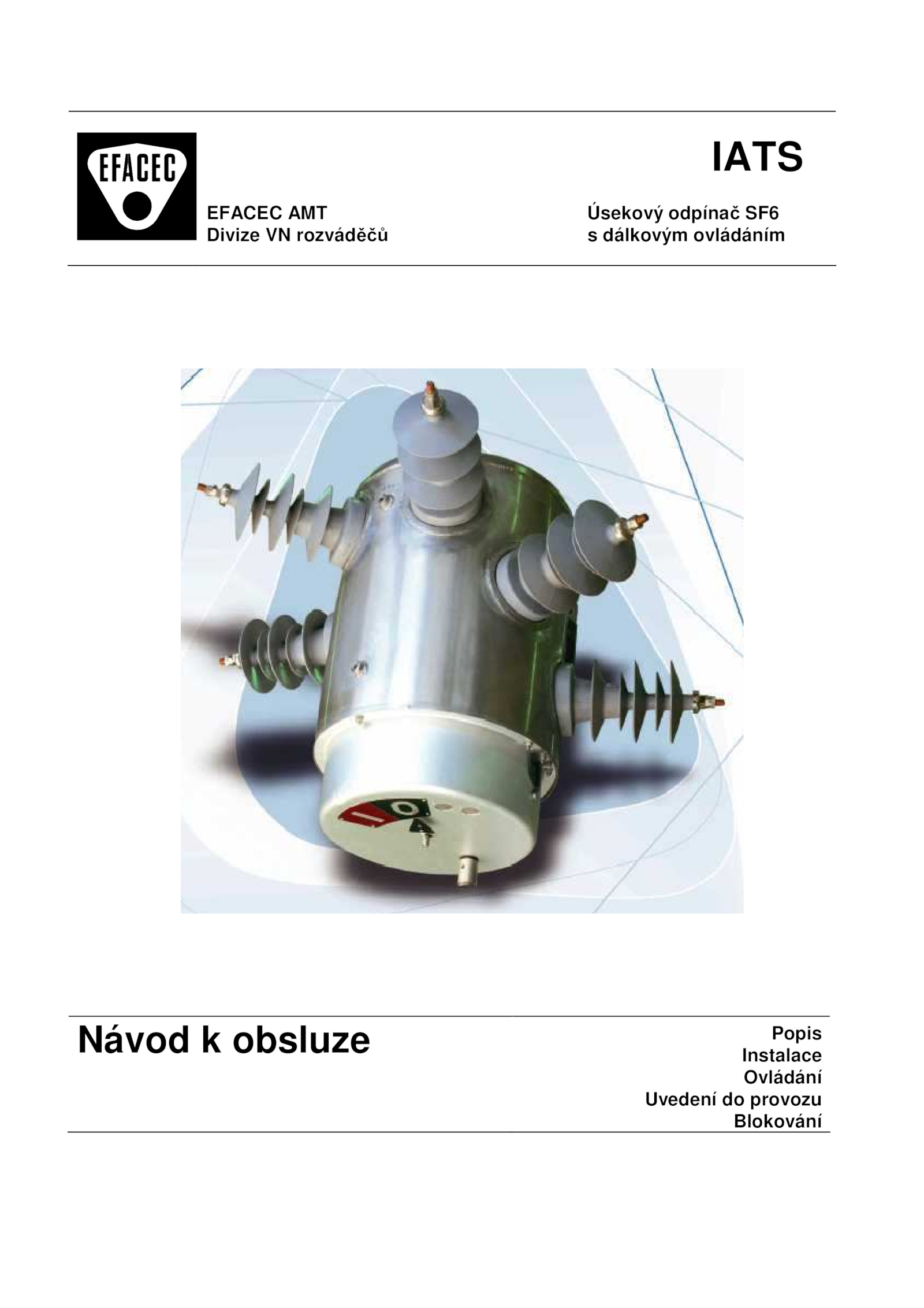 IATS EFACEC AMT Úsekový odpínač SF6 Divize rozváděčů dálkovým ovládáním Návod obsluze Popis Instalace Ovládání Uvedení provozu Blokování