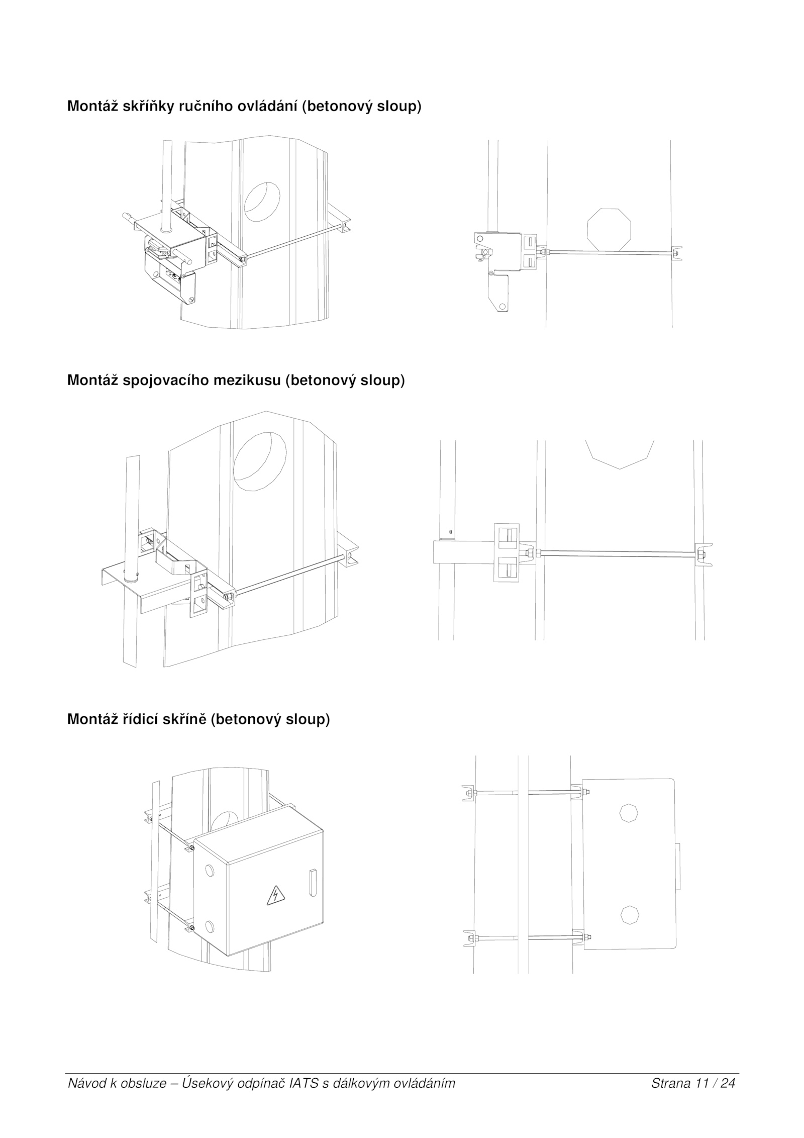 Návod obsluze Úsekový odpínač IATS dálkovým ovládáním Strana 24 Montáž skříňky ručního ovládání (betonový sloup) Montáž spojovacího mezikusu (betonový sloup) Montáž řídicí skříně (betonový sloup)