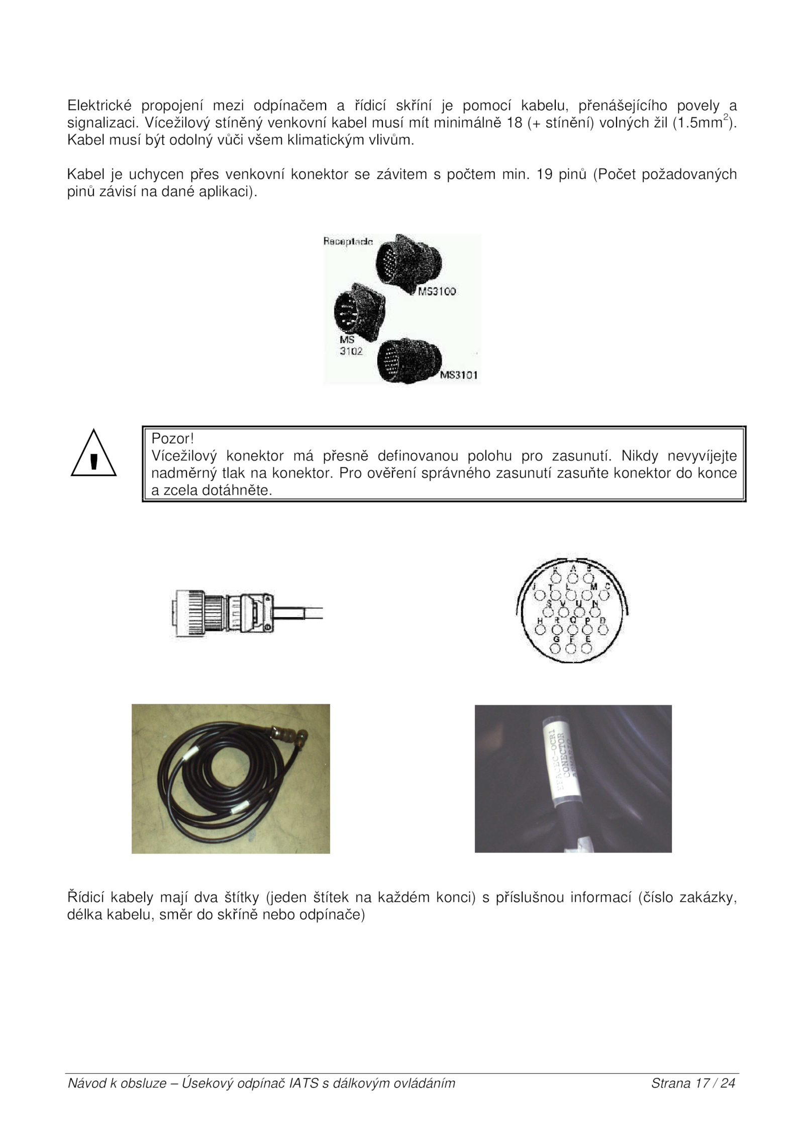 Kabel uchycen přes venkovní konektor závitem počtem min.Návod obsluze Úsekový odpínač IATS dálkovým ovládáním Strana 24